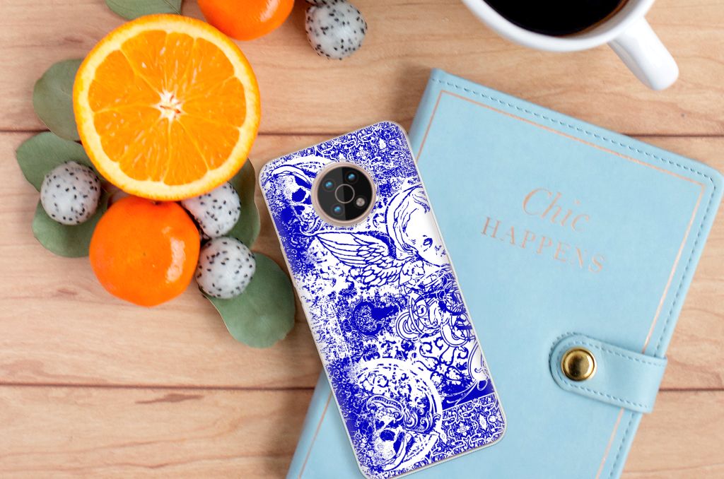Dit ietwat duistere blauwe patroon tref je vaak aan op een bandana. Een bandana wordt om het hoofd of de hals gedragen. Een bandana is ideaal als je op de racefiets, motor of de brommer zit en jezelf wilt beschermen tegen wind, opwaaiend stof of fijn zand. Leden van motorclubs dragen dit soort bandana’s dan ook graag. Wil je jouw Nokia G50 optimaal beschermen tegen opwaaiend stof, zand of andere bedreigingen, dan is dit design hoesje met Angel Skull Blue design een zeer goede keus. Het design staat op een TPU case. Dit Silicone Back Case wordt alleen aan de bovenkant bedrukt en is zeer flexibel. De randen van het hoesje blijven transparant en worden niet bedrukt. Met dit hoesje past jouw telefoon altijd in je broekzak.