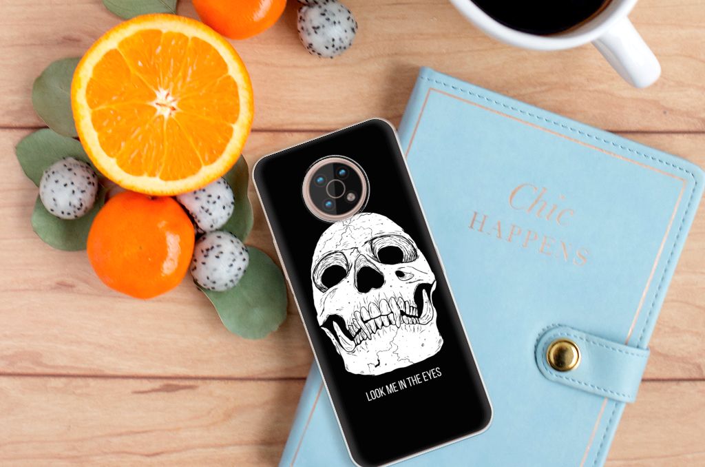 Ben je op zoek naar een uniek telefoonhoesje voor je Nokia G50? Dan ben je bij B2C Telecom aan het juiste adres! Speciaal voor jou hebben we dit prachtige Skull Eyes design in onze collectie hoesjes opgenomen. Het design wordt bedrukt op een Silicone Back Case en is gemaakt van flexibel rubber. Het design wordt alleen aan de bovenkant van het hoesje bedrukt en de randen blijven transparant. Aan de zijkanten zijn uitsparingen gemaakt waardoor je met gemak alle knoppen en poorten kunt bedienen. Wij adviseren om dit hoesje in combinatie met een screenprotector te gebruiken voor een langere levensduur van je telefoon. Wil je dit design hoesje nog iets extra's geven? Voeg dan gratis je naam of een quote toe! Is dit design hoesje toch niet helemaal wat je zocht? Ontwerp dan zelf een hoesje in ons ontwerpprogramma.