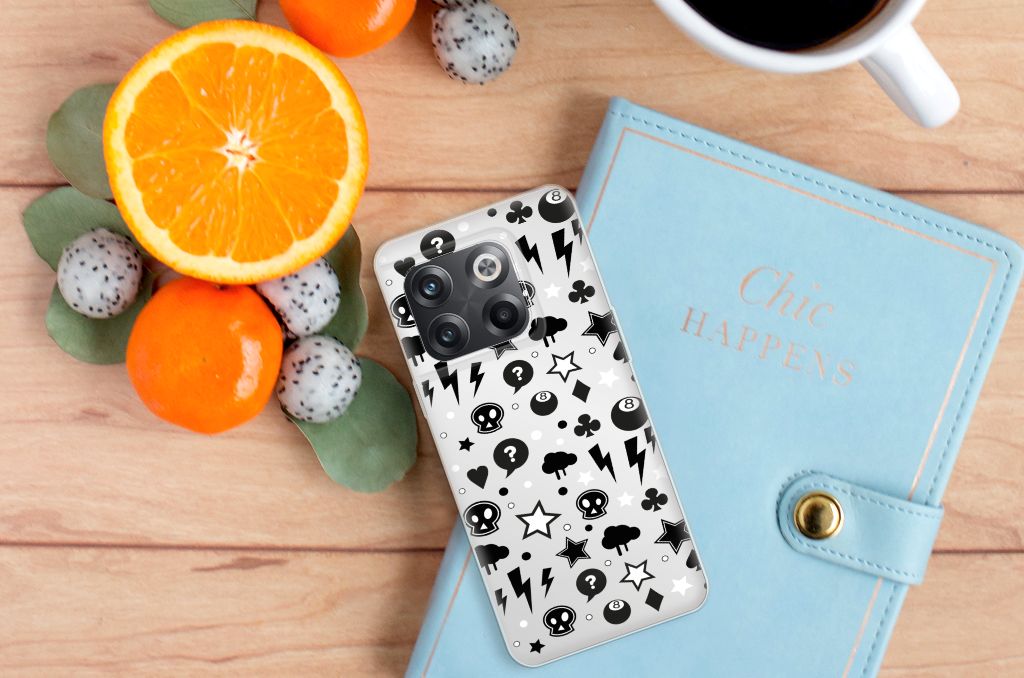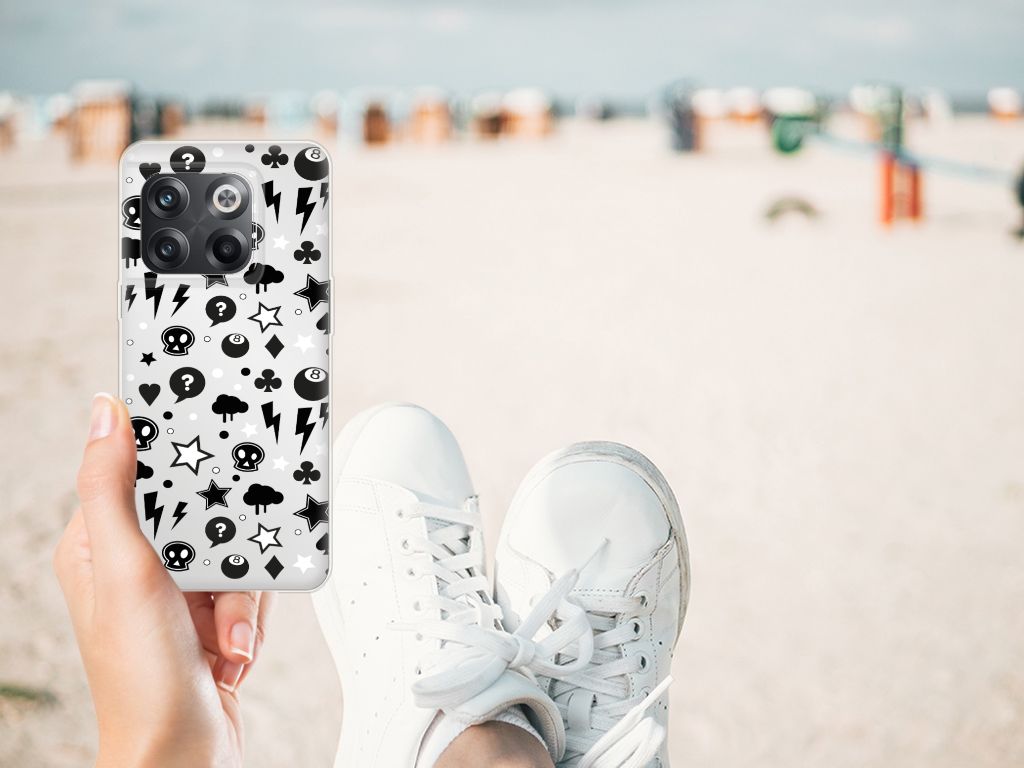Bliksemflitsen, donderwolken, sterren en biljartballen vliegen op je af als je deze OnePlus 10T Silicone Back Case koopt. Het bijzondere Silver Punk design is van onze eigen ontwerper en vind je in geen enkel andere winkel of webshop. Ben je fan van dit soort stoere en opvallende hoesjes, dan kun je je geluk niet op als je ons assortiment smartphone accessoires bekijkt. Dit zeer flexibele smartphone hoesje heeft alle nodige uitsparingen en past altijd in je broekzak. De tpu case is aan de bovenkant bedrukt met bliksemflitsen, donderwolken, sterren en biljartballen, de randen blijven transparant. Het TPU is onbreekbaar. Zelfs doodshoofdjes zie je voorbijkomen in het design. Om maar aan te geven dat je met dit zilveren hoesje een krachtige smartphone accessoire te pakken hebt.