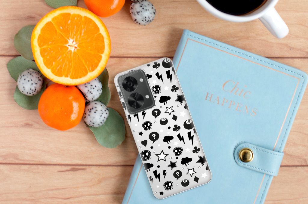 Bliksemflitsen, donderwolken, sterren en biljartballen vliegen op je af als je deze OnePlus Nord 2T Silicone Back Case koopt. Het bijzondere Silver Punk design is van onze eigen ontwerper en vind je in geen enkel andere winkel of webshop. Ben je fan van dit soort stoere en opvallende hoesjes, dan kun je je geluk niet op als je ons assortiment smartphone accessoires bekijkt. Dit zeer flexibele smartphone hoesje heeft alle nodige uitsparingen en past altijd in je broekzak. De tpu case is aan de bovenkant bedrukt met bliksemflitsen, donderwolken, sterren en biljartballen, de randen blijven transparant. Het TPU is onbreekbaar. Zelfs doodshoofdjes zie je voorbijkomen in het design. Om maar aan te geven dat je met dit zilveren hoesje een krachtige smartphone accessoire te pakken hebt.