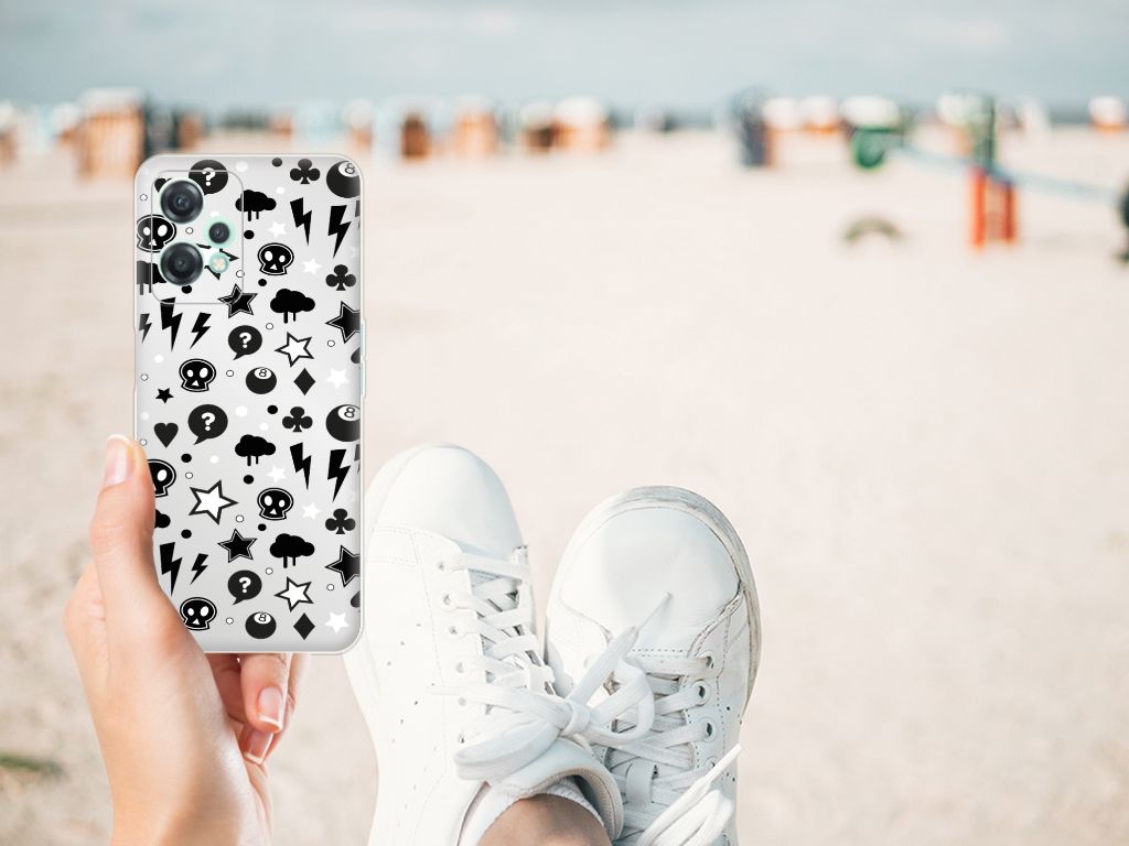 Bliksemflitsen, donderwolken, sterren en biljartballen vliegen op je af als je deze OnePlus Nord CE 2 Lite Silicone Back Case koopt. Het bijzondere Silver Punk design is van onze eigen ontwerper en vind je in geen enkel andere winkel of webshop. Ben je fan van dit soort stoere en opvallende hoesjes, dan kun je je geluk niet op als je ons assortiment smartphone accessoires bekijkt. Dit zeer flexibele smartphone hoesje heeft alle nodige uitsparingen en past altijd in je broekzak. De tpu case is aan de bovenkant bedrukt met bliksemflitsen, donderwolken, sterren en biljartballen, de randen blijven transparant. Het TPU is onbreekbaar. Zelfs doodshoofdjes zie je voorbijkomen in het design. Om maar aan te geven dat je met dit zilveren hoesje een krachtige smartphone accessoire te pakken hebt.