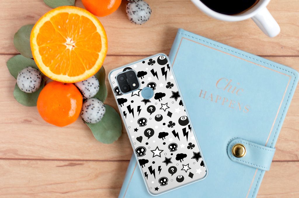 Bliksemflitsen, donderwolken, sterren en biljartballen vliegen op je af als je deze OPPO A15 Silicone Back Case koopt. Het bijzondere Silver Punk design is van onze eigen ontwerper en vind je in geen enkel andere winkel of webshop. Ben je fan van dit soort stoere en opvallende hoesjes, dan kun je je geluk niet op als je ons assortiment smartphone accessoires bekijkt. Dit zeer flexibele smartphone hoesje heeft alle nodige uitsparingen en past altijd in je broekzak. De tpu case is aan de bovenkant bedrukt met bliksemflitsen, donderwolken, sterren en biljartballen, de randen blijven transparant. Het TPU is onbreekbaar. Zelfs doodshoofdjes zie je voorbijkomen in het design. Om maar aan te geven dat je met dit zilveren hoesje een krachtige smartphone accessoire te pakken hebt.