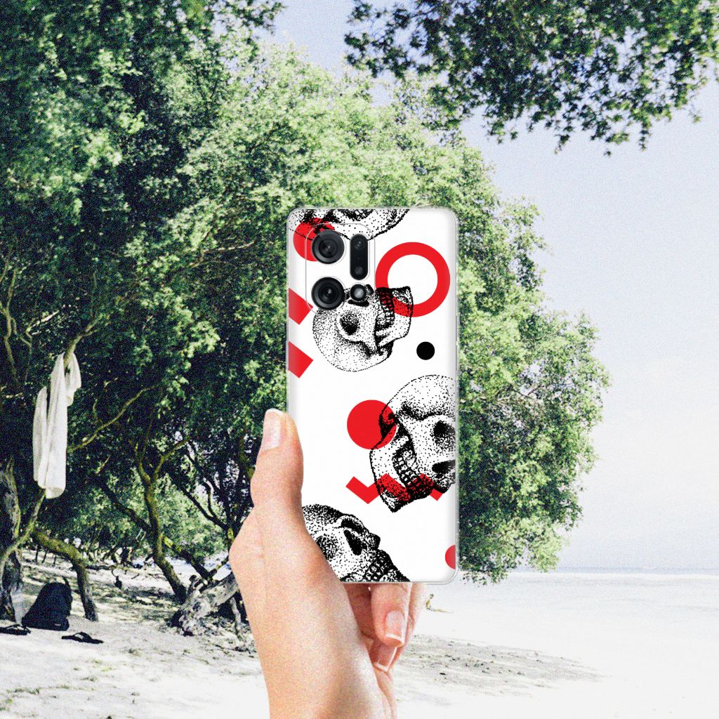 Deze mooie OPPO Find X5 Silicone Back Case met Skull Red design is een stoere en duurzame bescherming voor jouw smartphone. De rode en witte patronen komen vloeiend samen met de schedel worden op alle zijden van de case bedrukt. Het printen doen we in eigen beheer, zodat we zeker weten dat het design van schedel en rode en witte patronen van uitstekende kwaliteit is. Het smartphone hoesje met schedel en rode en witte patronen is zeer flexibel. Een tpu hoesje is perfect op maat gemaakt en heeft een mooie uitstraling. Daarnaast is de case zeer flexibel en het materiaal is onbreekbaar. De case heeft opstaande randen ter bescherming van het scherm. De randen van het tpu hoesje worden niet met de schedel en rode en witte patronen bedrukt. Kijk voor andere patronen samen met schedels in ons assortiment design hoesjes of ontwerp je eigen unieke case!