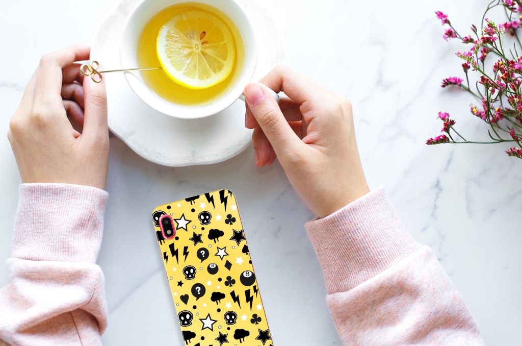 Ben je op zoek naar een uniek telefoonhoesje voor je Samsung Galaxy A10? Dan ben je bij B2C Telecom aan het juiste adres! Speciaal voor jou hebben we dit prachtige Punk Yellow design in onze collectie hoesjes opgenomen. Het design wordt bedrukt op een Silicone Back Case en is gemaakt van flexibel rubber. Het design wordt alleen aan de bovenkant van het hoesje bedrukt en de randen blijven transparant. Aan de zijkanten zijn uitsparingen gemaakt waardoor je met gemak alle knoppen en poorten kunt bedienen. Wij adviseren om dit hoesje in combinatie met een screenprotector te gebruiken voor een langere levensduur van je telefoon. Wil je dit design hoesje nog iets extra's geven? Voeg dan gratis je naam of een quote toe! Is dit design hoesje toch niet helemaal wat je zocht? Ontwerp dan zelf een hoesje in ons ontwerpprogramma.