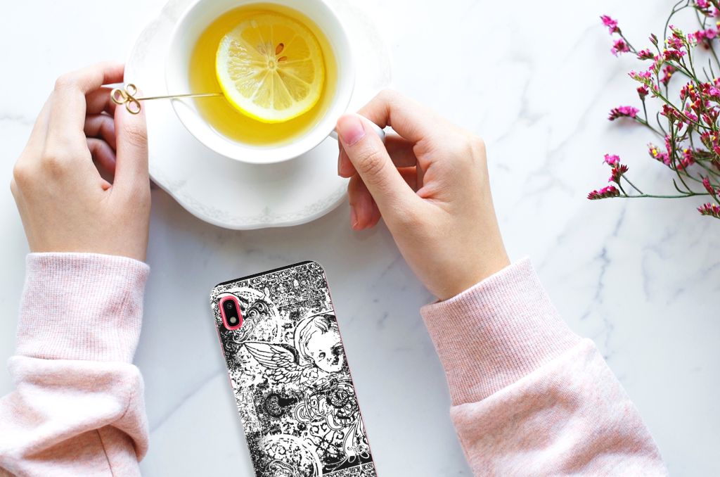 Dit mysterieuze patroon tref je vaak aan op een bandana. Een bandana is een kledingstuk dat om het hoofd of de hals wordt gedragen. Behalve als kledingstuk vindt de bandana soms toepassing als signaal. Een bandana is het eenvoudigste middel als je op de motor of de brommer zit en jezelf wilt beschermen tegen wind, opwaaiend stof of fijn zand. Leden van bekende motorclubs dragen dit kledingstuk dan ook graag, om meerdere redenen. Wil je jouw Samsung Galaxy A10 optimaal beschermen tegen opwaaiend stof, zand of andere bedreigingen, dan is dit design hoesje met Skulls Angel een zeer goede keus. Het design staat op een TPU case. Dit Silicone Back Case wordt alleen aan de bovenkant bedrukt en is zeer flexibel. De randen van het hoesje blijven transparant en worden niet bedrukt. Met dit hoesje past jouw telefoon altijd in je broekzak.