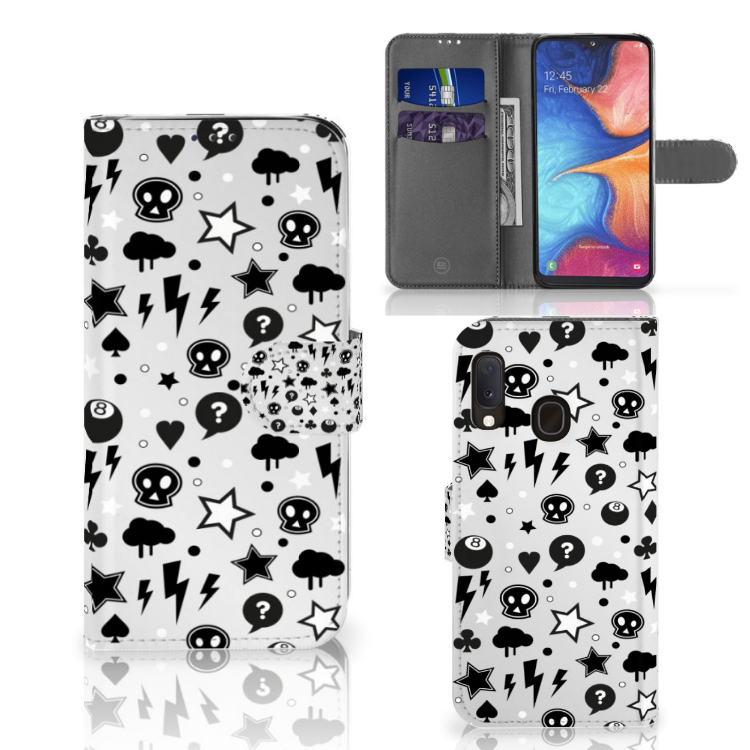 Bliksemflitsen, donderwolken, sterren en biljartballen vliegen op je af als je deze Samsung Galaxy A20e Silicone Back Case koopt. Het bijzondere Silver Punk design is van onze eigen ontwerper en vind je in geen enkel andere winkel of webshop. Ben je fan van dit soort stoere en opvallende hoesjes, dan kun je je geluk niet op als je ons assortiment smartphone accessoires bekijkt. Dit zeer flexibele smartphone hoesje heeft alle nodige uitsparingen en past altijd in je broekzak. De tpu case is aan de bovenkant bedrukt met bliksemflitsen, donderwolken, sterren en biljartballen, de randen blijven transparant. Het TPU is onbreekbaar. Zelfs doodshoofdjes zie je voorbijkomen in het design. Om maar aan te geven dat je met dit zilveren hoesje een krachtige smartphone accessoire te pakken hebt.