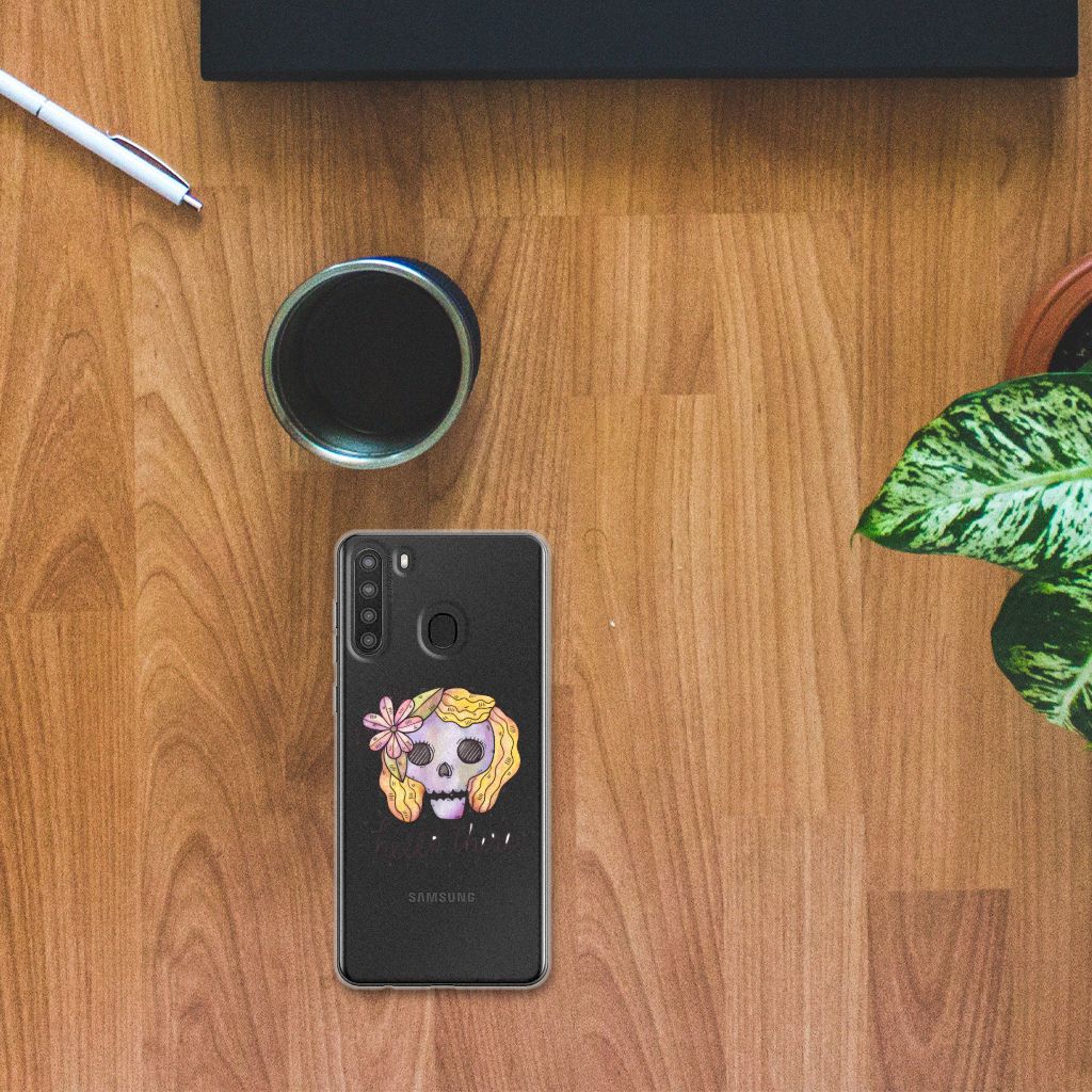 Ben je op zoek naar een uniek telefoonhoesje voor je Samsung Galaxy A21? Dan ben je bij B2C Telecom aan het juiste adres! Speciaal voor jou hebben we dit prachtige Boho Skull design in onze collectie hoesjes opgenomen. Het design wordt bedrukt op een Silicone Back Case en is gemaakt van flexibel rubber. Het design wordt alleen aan de bovenkant van het hoesje bedrukt en de randen blijven transparant. Aan de zijkanten zijn uitsparingen gemaakt waardoor je met gemak alle knoppen en poorten kunt bedienen. Wij adviseren om dit hoesje in combinatie met een screenprotector te gebruiken voor een langere levensduur van je telefoon. Wil je dit design hoesje nog iets extra's geven? Voeg dan gratis je naam of een quote toe! Is dit design hoesje toch niet helemaal wat je zocht? Ontwerp dan zelf een hoesje in ons ontwerpprogramma.