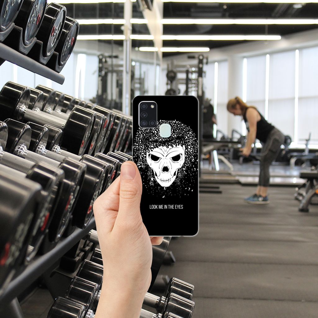 Ben je op zoek naar een uniek telefoonhoesje voor je Samsung Galaxy A21s? Dan ben je bij B2C Telecom aan het juiste adres! Speciaal voor jou hebben we dit prachtige Skull Hair design in onze collectie hoesjes opgenomen. Het design wordt bedrukt op een Silicone Back Case en is gemaakt van flexibel rubber. Het design wordt alleen aan de bovenkant van het hoesje bedrukt en de randen blijven transparant. Aan de zijkanten zijn uitsparingen gemaakt waardoor je met gemak alle knoppen en poorten kunt bedienen. Wij adviseren om dit hoesje in combinatie met een screenprotector te gebruiken voor een langere levensduur van je telefoon. Wil je dit design hoesje nog iets extra's geven? Voeg dan gratis je naam of een quote toe! Is dit design hoesje toch niet helemaal wat je zocht? Ontwerp dan zelf een hoesje in ons ontwerpprogramma.
