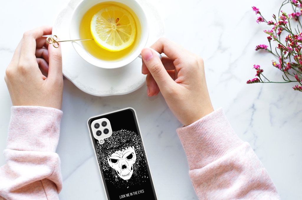 Ben je op zoek naar een uniek telefoonhoesje voor je Samsung Galaxy A22 4G | M22? Dan ben je bij B2C Telecom aan het juiste adres! Speciaal voor jou hebben we dit prachtige Skull Hair design in onze collectie hoesjes opgenomen. Het design wordt bedrukt op een Silicone Back Case en is gemaakt van flexibel rubber. Het design wordt alleen aan de bovenkant van het hoesje bedrukt en de randen blijven transparant. Aan de zijkanten zijn uitsparingen gemaakt waardoor je met gemak alle knoppen en poorten kunt bedienen. Wij adviseren om dit hoesje in combinatie met een screenprotector te gebruiken voor een langere levensduur van je telefoon. Wil je dit design hoesje nog iets extra's geven? Voeg dan gratis je naam of een quote toe! Is dit design hoesje toch niet helemaal wat je zocht? Ontwerp dan zelf een hoesje in ons ontwerpprogramma.