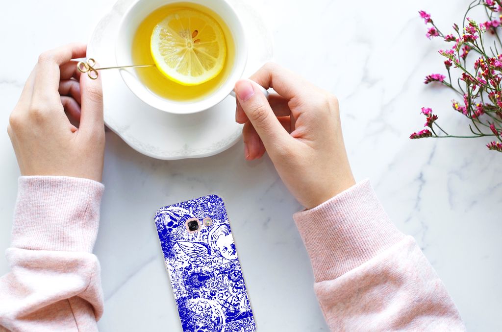 Dit ietwat duistere blauwe patroon tref je vaak aan op een bandana. Een bandana wordt om het hoofd of de hals gedragen. Een bandana is ideaal als je op de racefiets, motor of de brommer zit en jezelf wilt beschermen tegen wind, opwaaiend stof of fijn zand. Leden van motorclubs dragen dit soort bandana’s dan ook graag. Wil je jouw Samsung Galaxy A3 2017 optimaal beschermen tegen opwaaiend stof, zand of andere bedreigingen, dan is dit design hoesje met Angel Skull Blue design een zeer goede keus. Het design staat op een TPU case. Dit Silicone Back Case wordt alleen aan de bovenkant bedrukt en is zeer flexibel. De randen van het hoesje blijven transparant en worden niet bedrukt. Met dit hoesje past jouw telefoon altijd in je broekzak.