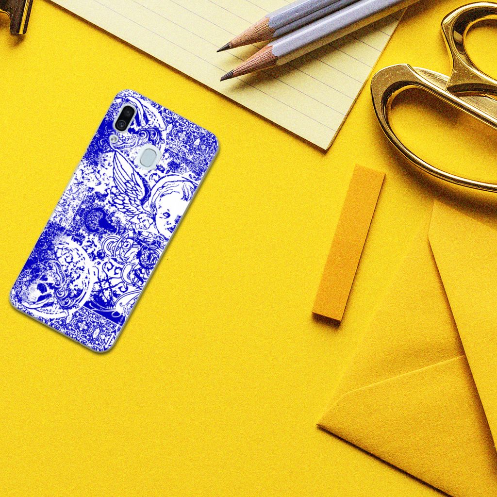 Dit ietwat duistere blauwe patroon tref je vaak aan op een bandana. Een bandana wordt om het hoofd of de hals gedragen. Een bandana is ideaal als je op de racefiets, motor of de brommer zit en jezelf wilt beschermen tegen wind, opwaaiend stof of fijn zand. Leden van motorclubs dragen dit soort bandana’s dan ook graag. Wil je jouw Samsung Galaxy A30 optimaal beschermen tegen opwaaiend stof, zand of andere bedreigingen, dan is dit design hoesje met Angel Skull Blue design een zeer goede keus. Het design staat op een TPU case. Dit Silicone Back Case wordt alleen aan de bovenkant bedrukt en is zeer flexibel. De randen van het hoesje blijven transparant en worden niet bedrukt. Met dit hoesje past jouw telefoon altijd in je broekzak.