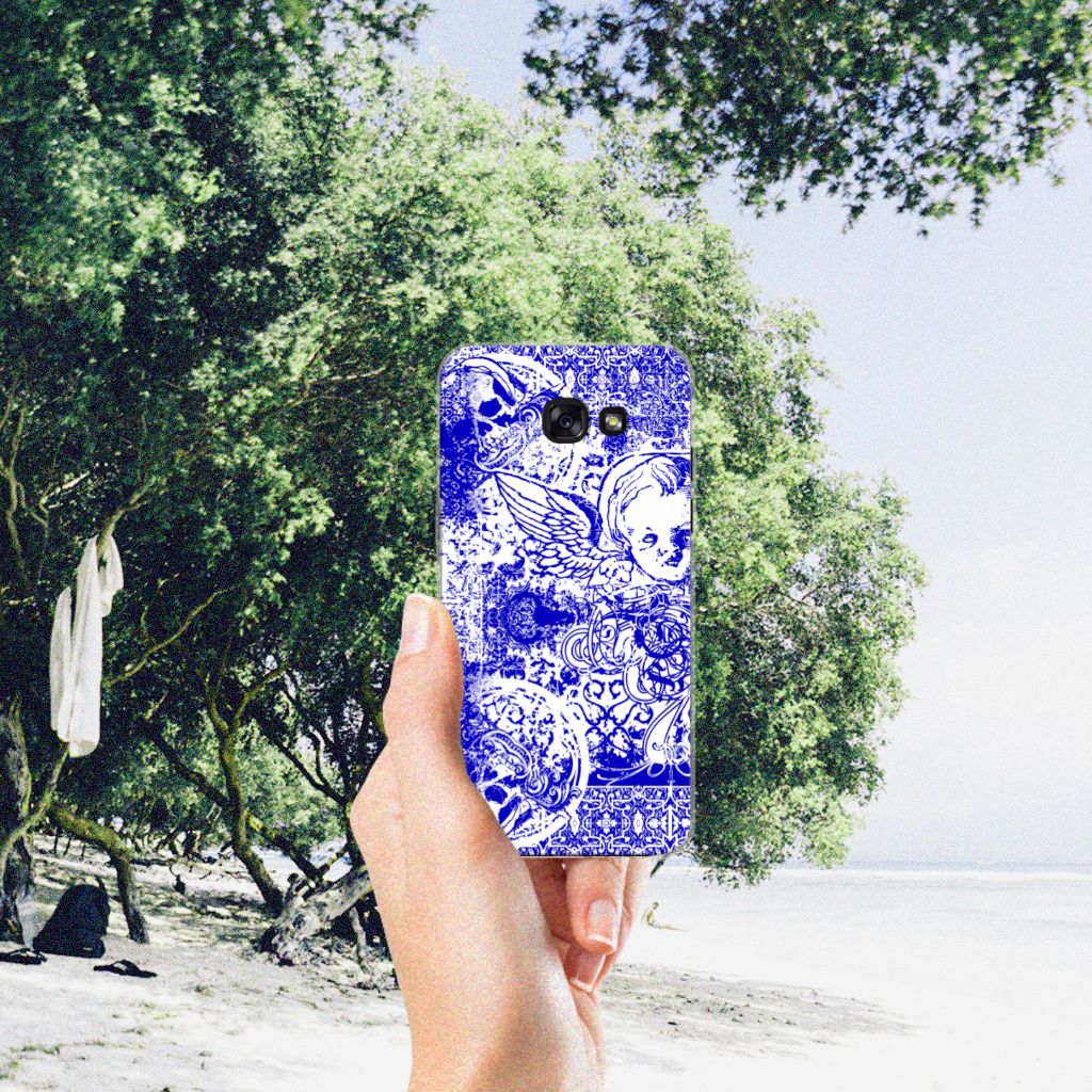Dit ietwat duistere blauwe patroon tref je vaak aan op een bandana. Een bandana wordt om het hoofd of de hals gedragen. Een bandana is ideaal als je op de racefiets, motor of de brommer zit en jezelf wilt beschermen tegen wind, opwaaiend stof of fijn zand. Leden van motorclubs dragen dit soort bandana’s dan ook graag. Wil je jouw Samsung Galaxy A5 2017 optimaal beschermen tegen opwaaiend stof, zand of andere bedreigingen, dan is dit design hoesje met Angel Skull Blue design een zeer goede keus. Het design staat op een TPU case. Dit Silicone Back Case wordt alleen aan de bovenkant bedrukt en is zeer flexibel. De randen van het hoesje blijven transparant en worden niet bedrukt. Met dit hoesje past jouw telefoon altijd in je broekzak.