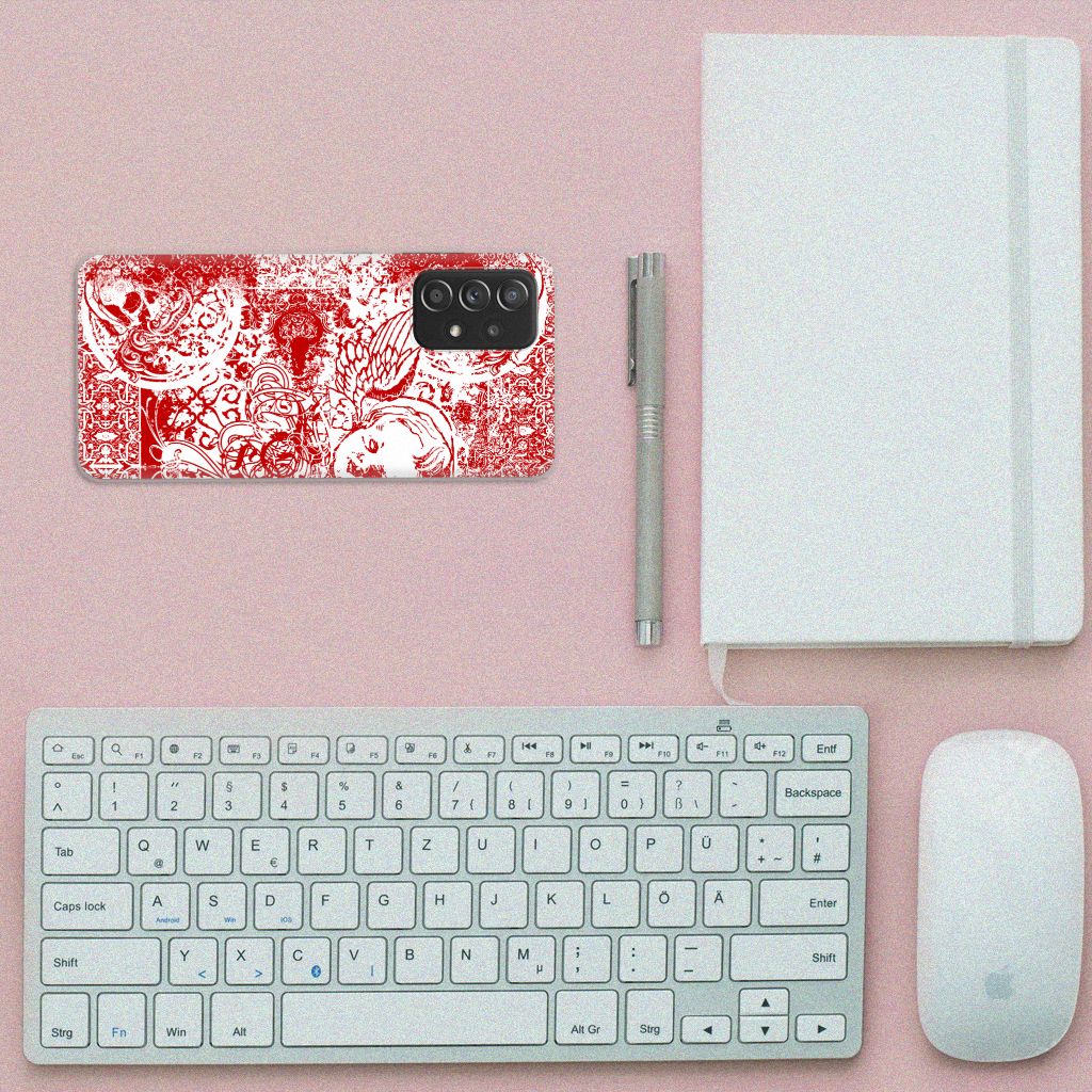 Altijd al een mysterieus patroon in de vorm van een bandana op een design hoesje willen hebben? Dit stoere Samsung Galaxy A52 (5G/4G) Silicone Back Case met het design Angel Skull Red is het ideale kledingstuk voor jouw telefoon. Een bandana is het eenvoudigste middel als je op de motor of de brommer zit en jezelf wilt beschermen tegen wind, opwaaiend stof of fijn zand. Leden van bekende motorclubs dragen dit dan ook graag. Wil jouw telefoon optimaal beschermen tegen opwaaiend stof, zand of andere bedreigingen, dan is dit design hoesje met bandana een zeer goede keus. Deze TPU case wordt alleen aan de bovenkant bedrukt en is zeer flexibel. De randen van het hoesje blijven transparant en worden niet bedrukt. Met dit hoesje past jouw telefoon altijd in je broekzak. Ga voor deze mooie TPU hoes met bandana print.