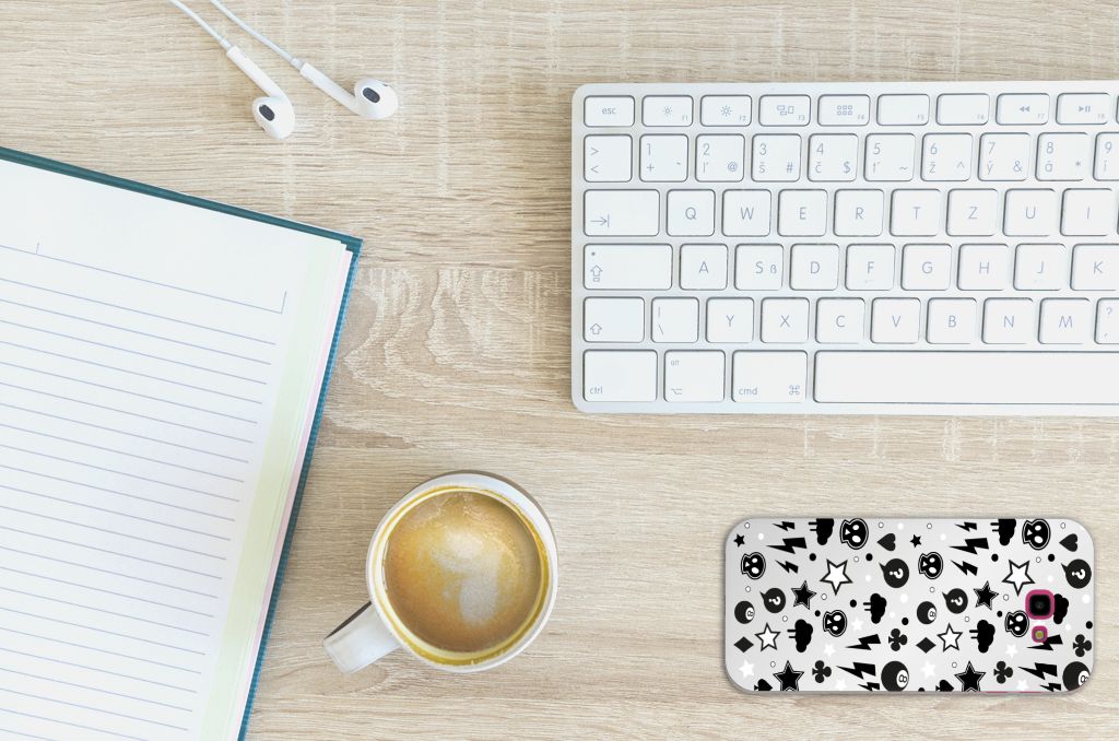 Bliksemflitsen, donderwolken, sterren en biljartballen vliegen op je af als je deze Samsung Galaxy J4 Plus (2018) Silicone Back Case koopt. Het bijzondere Silver Punk design is van onze eigen ontwerper en vind je in geen enkel andere winkel of webshop. Ben je fan van dit soort stoere en opvallende hoesjes, dan kun je je geluk niet op als je ons assortiment smartphone accessoires bekijkt. Dit zeer flexibele smartphone hoesje heeft alle nodige uitsparingen en past altijd in je broekzak. De tpu case is aan de bovenkant bedrukt met bliksemflitsen, donderwolken, sterren en biljartballen, de randen blijven transparant. Het TPU is onbreekbaar. Zelfs doodshoofdjes zie je voorbijkomen in het design. Om maar aan te geven dat je met dit zilveren hoesje een krachtige smartphone accessoire te pakken hebt.