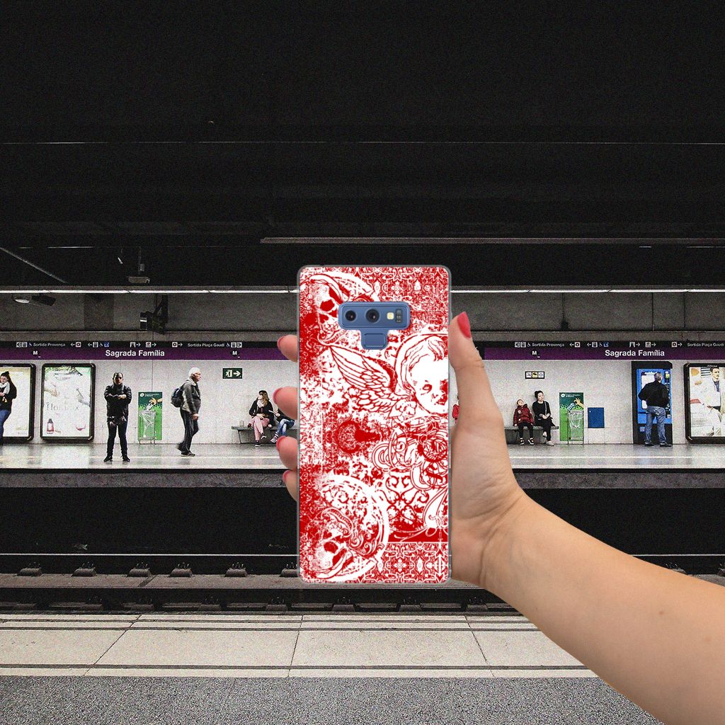 Altijd al een mysterieus patroon in de vorm van een bandana op een design hoesje willen hebben? Dit stoere Samsung Galaxy Note 9 Silicone Back Case met het design Angel Skull Red is het ideale kledingstuk voor jouw telefoon. Een bandana is het eenvoudigste middel als je op de motor of de brommer zit en jezelf wilt beschermen tegen wind, opwaaiend stof of fijn zand. Leden van bekende motorclubs dragen dit dan ook graag. Wil jouw telefoon optimaal beschermen tegen opwaaiend stof, zand of andere bedreigingen, dan is dit design hoesje met bandana een zeer goede keus. Deze TPU case wordt alleen aan de bovenkant bedrukt en is zeer flexibel. De randen van het hoesje blijven transparant en worden niet bedrukt. Met dit hoesje past jouw telefoon altijd in je broekzak. Ga voor deze mooie TPU hoes met bandana print.