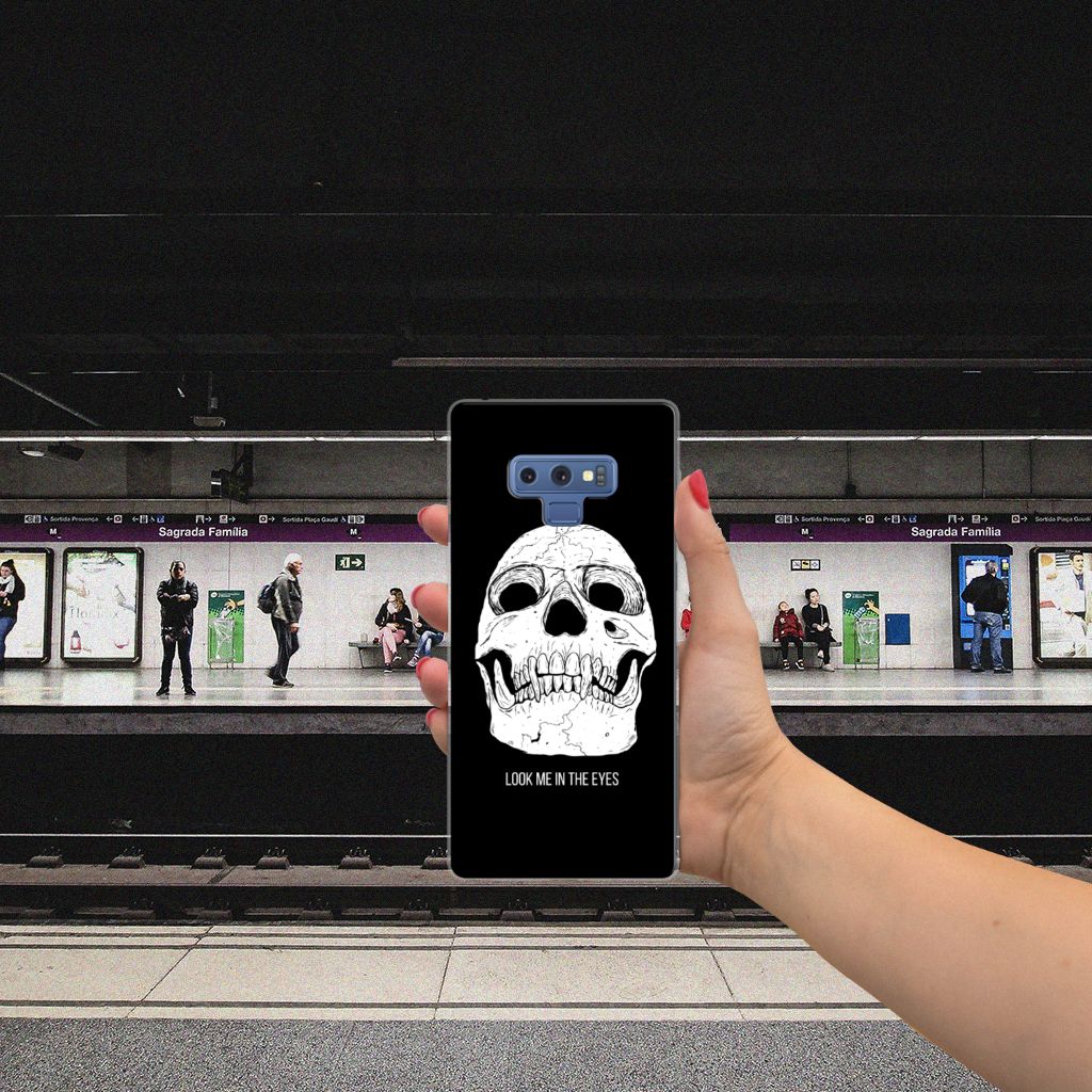 Ben je op zoek naar een uniek telefoonhoesje voor je Samsung Galaxy Note 9? Dan ben je bij B2C Telecom aan het juiste adres! Speciaal voor jou hebben we dit prachtige Skull Eyes design in onze collectie hoesjes opgenomen. Het design wordt bedrukt op een Silicone Back Case en is gemaakt van flexibel rubber. Het design wordt alleen aan de bovenkant van het hoesje bedrukt en de randen blijven transparant. Aan de zijkanten zijn uitsparingen gemaakt waardoor je met gemak alle knoppen en poorten kunt bedienen. Wij adviseren om dit hoesje in combinatie met een screenprotector te gebruiken voor een langere levensduur van je telefoon. Wil je dit design hoesje nog iets extra's geven? Voeg dan gratis je naam of een quote toe! Is dit design hoesje toch niet helemaal wat je zocht? Ontwerp dan zelf een hoesje in ons ontwerpprogramma.