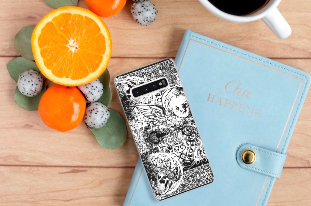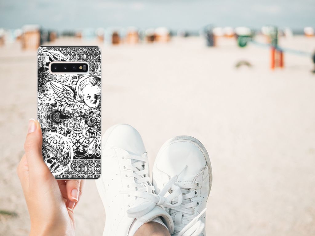 Dit mysterieuze patroon tref je vaak aan op een bandana. Een bandana is een kledingstuk dat om het hoofd of de hals wordt gedragen. Behalve als kledingstuk vindt de bandana soms toepassing als signaal. Een bandana is het eenvoudigste middel als je op de motor of de brommer zit en jezelf wilt beschermen tegen wind, opwaaiend stof of fijn zand. Leden van bekende motorclubs dragen dit kledingstuk dan ook graag, om meerdere redenen. Wil je jouw Samsung Galaxy S10 Plus optimaal beschermen tegen opwaaiend stof, zand of andere bedreigingen, dan is dit design hoesje met Skulls Angel een zeer goede keus. Het design staat op een TPU case. Dit Silicone Back Case wordt alleen aan de bovenkant bedrukt en is zeer flexibel. De randen van het hoesje blijven transparant en worden niet bedrukt. Met dit hoesje past jouw telefoon altijd in je broekzak.
