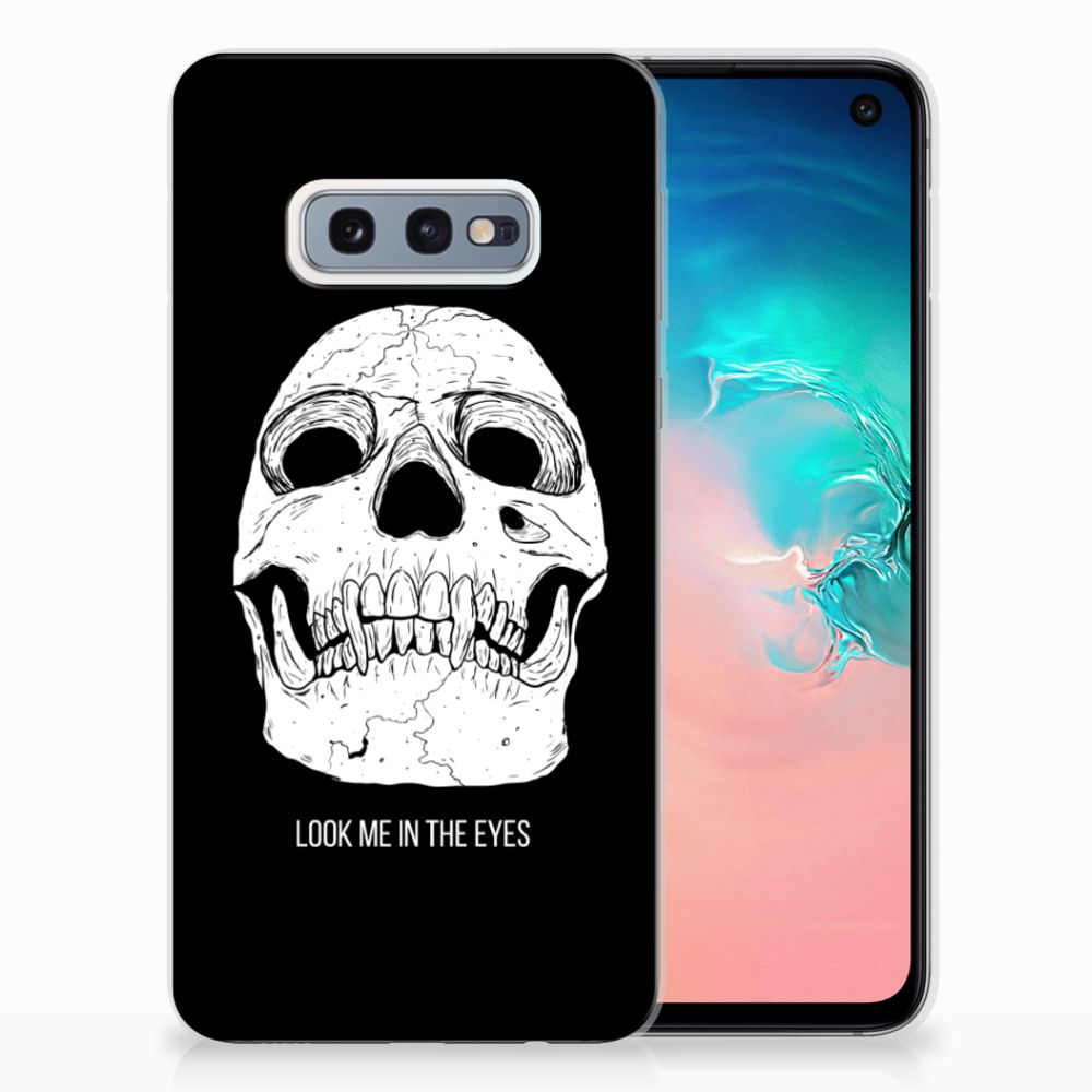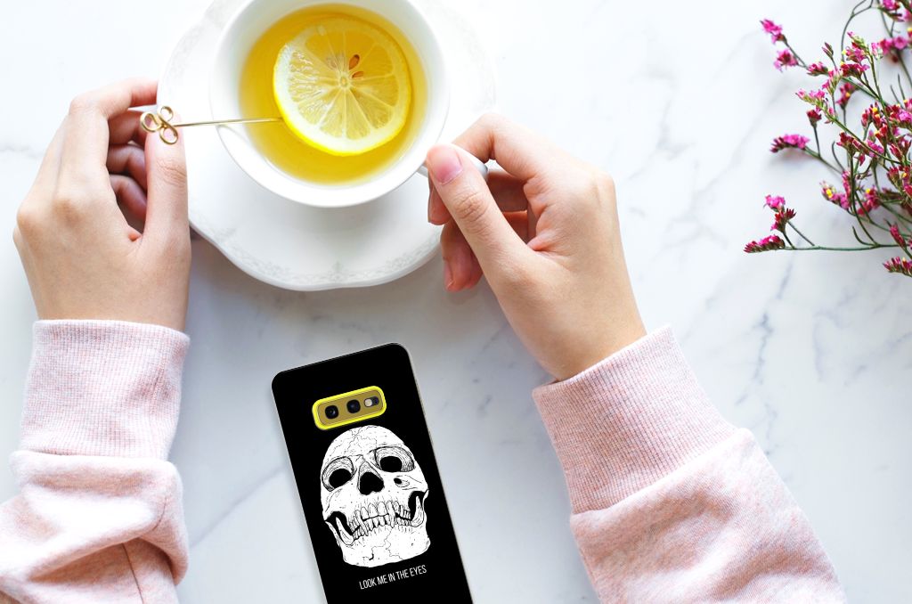 Ben je op zoek naar een uniek telefoonhoesje voor je Samsung Galaxy S10e? Dan ben je bij B2C Telecom aan het juiste adres! Speciaal voor jou hebben we dit prachtige Skull Eyes design in onze collectie hoesjes opgenomen. Het design wordt bedrukt op een Silicone Back Case en is gemaakt van flexibel rubber. Het design wordt alleen aan de bovenkant van het hoesje bedrukt en de randen blijven transparant. Aan de zijkanten zijn uitsparingen gemaakt waardoor je met gemak alle knoppen en poorten kunt bedienen. Wij adviseren om dit hoesje in combinatie met een screenprotector te gebruiken voor een langere levensduur van je telefoon. Wil je dit design hoesje nog iets extra's geven? Voeg dan gratis je naam of een quote toe! Is dit design hoesje toch niet helemaal wat je zocht? Ontwerp dan zelf een hoesje in ons ontwerpprogramma.