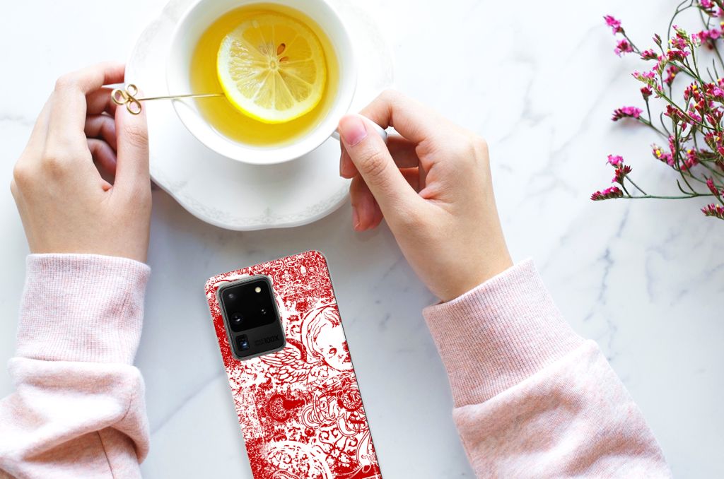 Telefoonhoesje met Naam Samsung Galaxy S20 Ultra Angel Skull Rood