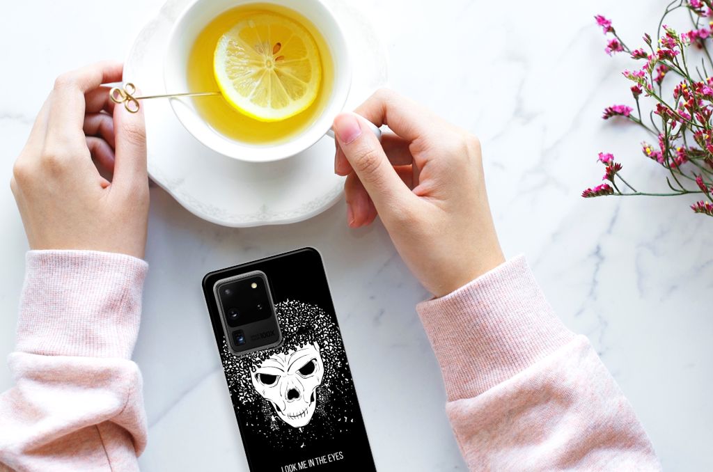 Ben je op zoek naar een uniek telefoonhoesje voor je Samsung Galaxy S20 Ultra? Dan ben je bij B2C Telecom aan het juiste adres! Speciaal voor jou hebben we dit prachtige Skull Hair design in onze collectie hoesjes opgenomen. Het design wordt bedrukt op een Silicone Back Case en is gemaakt van flexibel rubber. Het design wordt alleen aan de bovenkant van het hoesje bedrukt en de randen blijven transparant. Aan de zijkanten zijn uitsparingen gemaakt waardoor je met gemak alle knoppen en poorten kunt bedienen. Wij adviseren om dit hoesje in combinatie met een screenprotector te gebruiken voor een langere levensduur van je telefoon. Wil je dit design hoesje nog iets extra's geven? Voeg dan gratis je naam of een quote toe! Is dit design hoesje toch niet helemaal wat je zocht? Ontwerp dan zelf een hoesje in ons ontwerpprogramma.