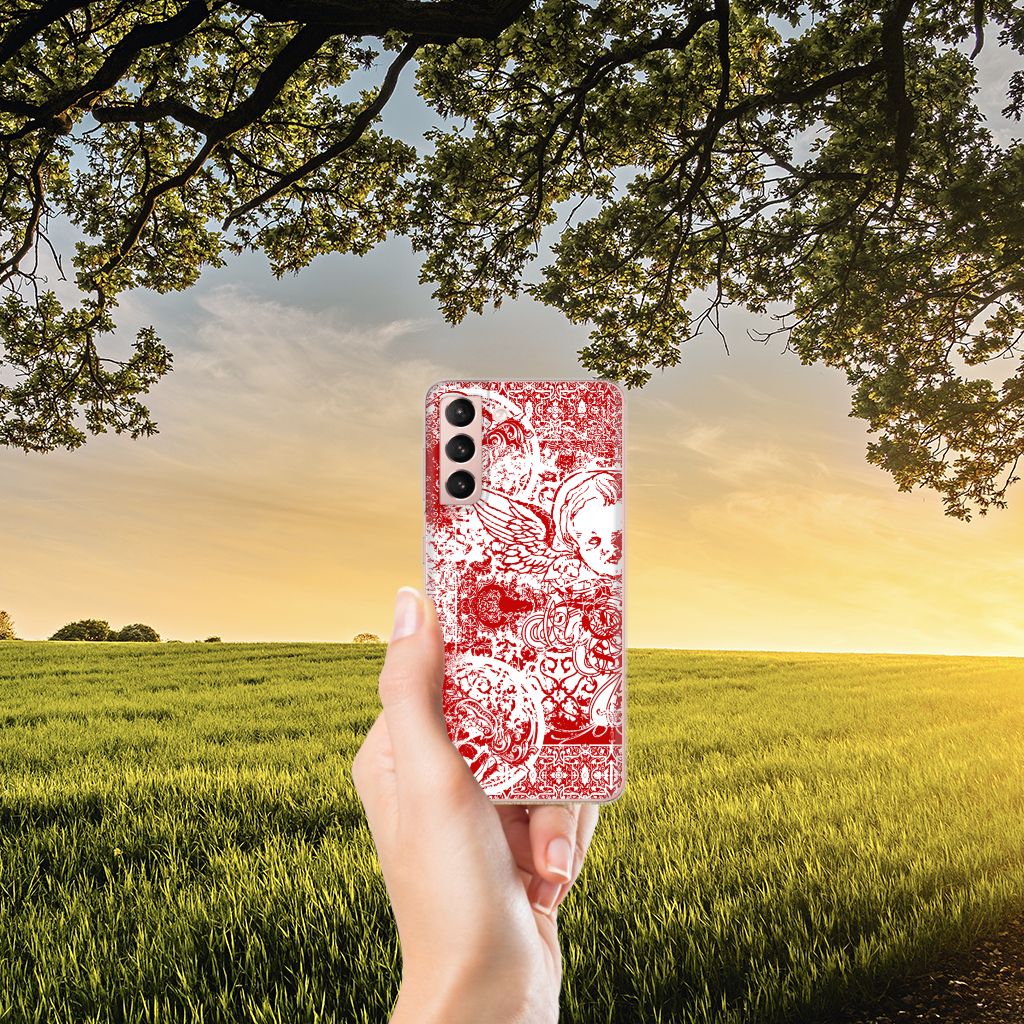 Altijd al een mysterieus patroon in de vorm van een bandana op een design hoesje willen hebben? Dit stoere Samsung Galaxy S21 Silicone Back Case met het design Angel Skull Red is het ideale kledingstuk voor jouw telefoon. Een bandana is het eenvoudigste middel als je op de motor of de brommer zit en jezelf wilt beschermen tegen wind, opwaaiend stof of fijn zand. Leden van bekende motorclubs dragen dit dan ook graag. Wil jouw telefoon optimaal beschermen tegen opwaaiend stof, zand of andere bedreigingen, dan is dit design hoesje met bandana een zeer goede keus. Deze TPU case wordt alleen aan de bovenkant bedrukt en is zeer flexibel. De randen van het hoesje blijven transparant en worden niet bedrukt. Met dit hoesje past jouw telefoon altijd in je broekzak. Ga voor deze mooie TPU hoes met bandana print.