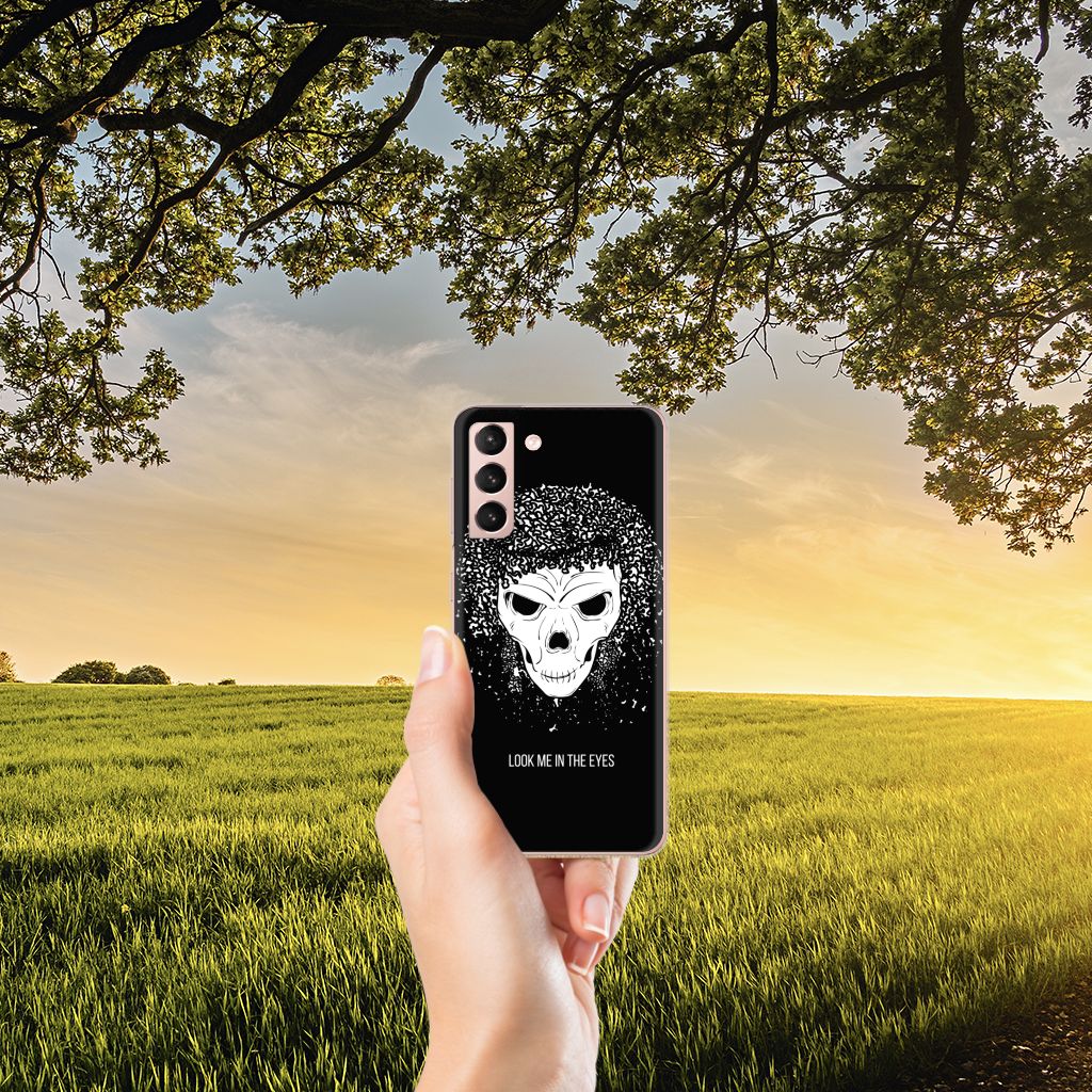 Ben je op zoek naar een uniek telefoonhoesje voor je Samsung Galaxy S21? Dan ben je bij B2C Telecom aan het juiste adres! Speciaal voor jou hebben we dit prachtige Skull Hair design in onze collectie hoesjes opgenomen. Het design wordt bedrukt op een Silicone Back Case en is gemaakt van flexibel rubber. Het design wordt alleen aan de bovenkant van het hoesje bedrukt en de randen blijven transparant. Aan de zijkanten zijn uitsparingen gemaakt waardoor je met gemak alle knoppen en poorten kunt bedienen. Wij adviseren om dit hoesje in combinatie met een screenprotector te gebruiken voor een langere levensduur van je telefoon. Wil je dit design hoesje nog iets extra's geven? Voeg dan gratis je naam of een quote toe! Is dit design hoesje toch niet helemaal wat je zocht? Ontwerp dan zelf een hoesje in ons ontwerpprogramma.