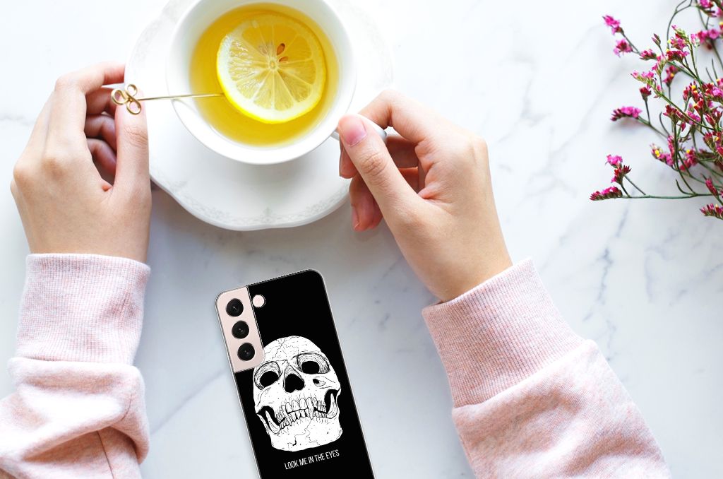 Ben je op zoek naar een uniek telefoonhoesje voor je Samsung Galaxy S22? Dan ben je bij B2C Telecom aan het juiste adres! Speciaal voor jou hebben we dit prachtige Skull Eyes design in onze collectie hoesjes opgenomen. Het design wordt bedrukt op een Silicone Back Case en is gemaakt van flexibel rubber. Het design wordt alleen aan de bovenkant van het hoesje bedrukt en de randen blijven transparant. Aan de zijkanten zijn uitsparingen gemaakt waardoor je met gemak alle knoppen en poorten kunt bedienen. Wij adviseren om dit hoesje in combinatie met een screenprotector te gebruiken voor een langere levensduur van je telefoon. Wil je dit design hoesje nog iets extra's geven? Voeg dan gratis je naam of een quote toe! Is dit design hoesje toch niet helemaal wat je zocht? Ontwerp dan zelf een hoesje in ons ontwerpprogramma.