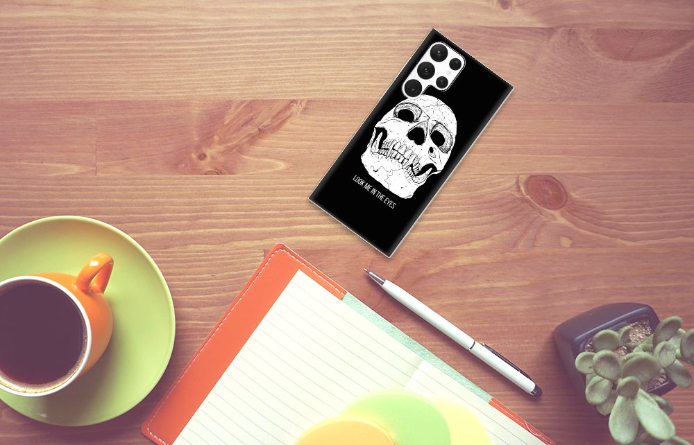 Ben je op zoek naar een uniek telefoonhoesje voor je Samsung Galaxy S22 Ultra? Dan ben je bij B2C Telecom aan het juiste adres! Speciaal voor jou hebben we dit prachtige Skull Eyes design in onze collectie hoesjes opgenomen. Het design wordt bedrukt op een Silicone Back Case en is gemaakt van flexibel rubber. Het design wordt alleen aan de bovenkant van het hoesje bedrukt en de randen blijven transparant. Aan de zijkanten zijn uitsparingen gemaakt waardoor je met gemak alle knoppen en poorten kunt bedienen. Wij adviseren om dit hoesje in combinatie met een screenprotector te gebruiken voor een langere levensduur van je telefoon. Wil je dit design hoesje nog iets extra's geven? Voeg dan gratis je naam of een quote toe! Is dit design hoesje toch niet helemaal wat je zocht? Ontwerp dan zelf een hoesje in ons ontwerpprogramma.