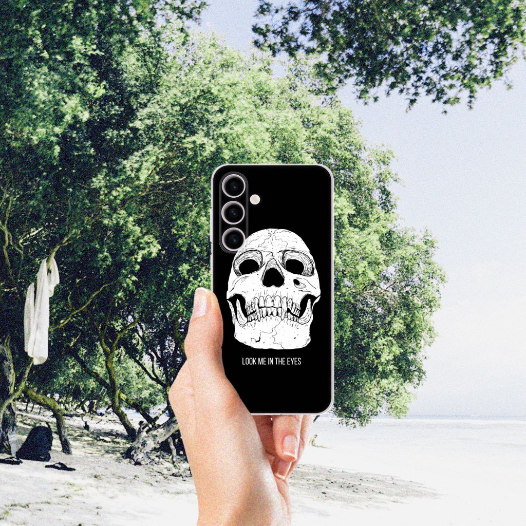 Ben je op zoek naar een uniek telefoonhoesje voor je Samsung Galaxy S24? Dan ben je bij B2C Telecom aan het juiste adres! Speciaal voor jou hebben we dit prachtige Skull Eyes design in onze collectie hoesjes opgenomen. Het design wordt bedrukt op een Silicone Back Case en is gemaakt van flexibel rubber. Het design wordt alleen aan de bovenkant van het hoesje bedrukt en de randen blijven transparant. Aan de zijkanten zijn uitsparingen gemaakt waardoor je met gemak alle knoppen en poorten kunt bedienen. Wij adviseren om dit hoesje in combinatie met een screenprotector te gebruiken voor een langere levensduur van je telefoon. Wil je dit design hoesje nog iets extra's geven? Voeg dan gratis je naam of een quote toe! Is dit design hoesje toch niet helemaal wat je zocht? Ontwerp dan zelf een hoesje in ons ontwerpprogramma.