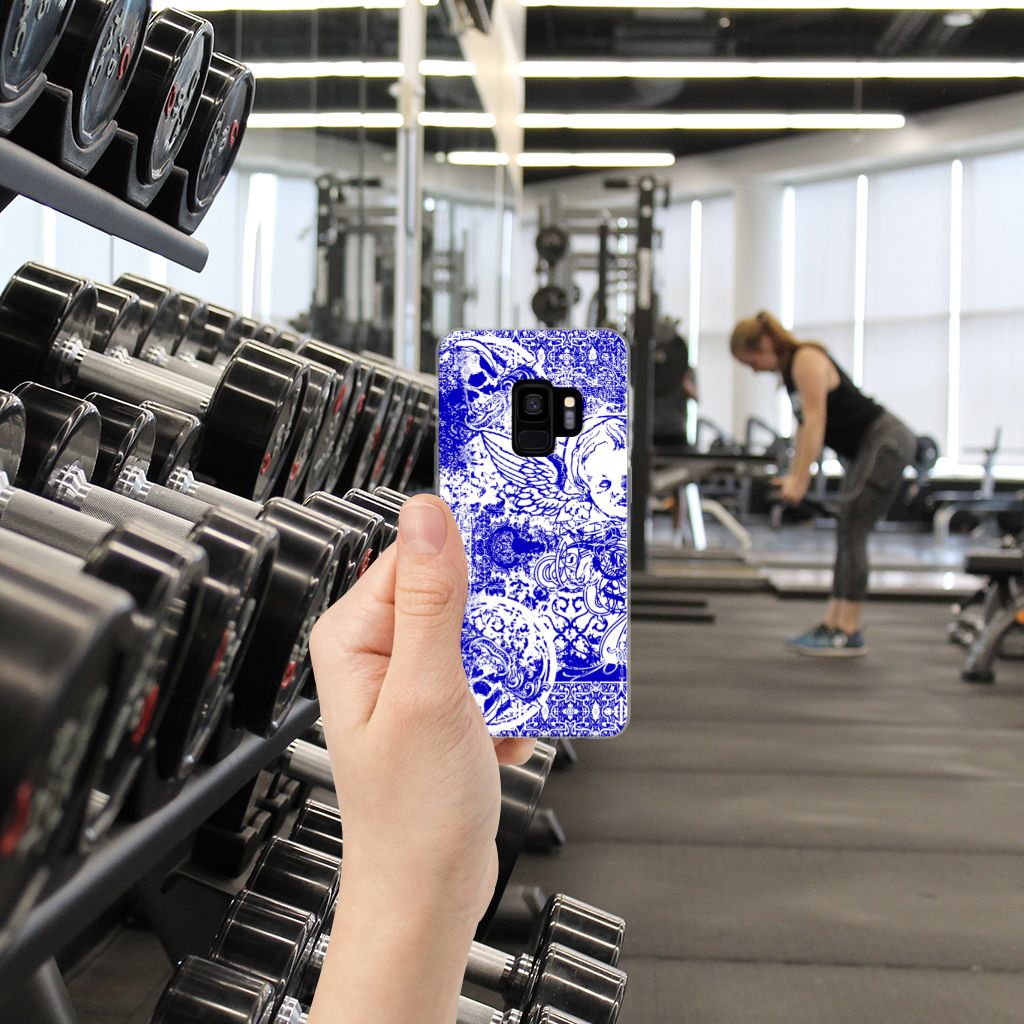 Dit ietwat duistere blauwe patroon tref je vaak aan op een bandana. Een bandana wordt om het hoofd of de hals gedragen. Een bandana is ideaal als je op de racefiets, motor of de brommer zit en jezelf wilt beschermen tegen wind, opwaaiend stof of fijn zand. Leden van motorclubs dragen dit soort bandana’s dan ook graag. Wil je jouw Samsung Galaxy S9 optimaal beschermen tegen opwaaiend stof, zand of andere bedreigingen, dan is dit design hoesje met Angel Skull Blue design een zeer goede keus. Het design staat op een TPU case. Dit Silicone Back Case wordt alleen aan de bovenkant bedrukt en is zeer flexibel. De randen van het hoesje blijven transparant en worden niet bedrukt. Met dit hoesje past jouw telefoon altijd in je broekzak.