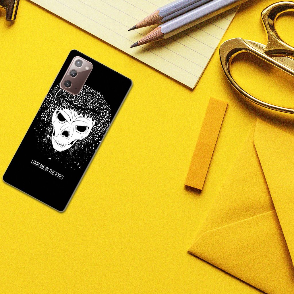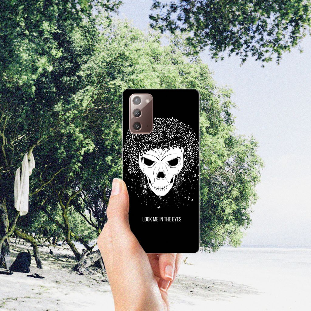 Ben je op zoek naar een uniek telefoonhoesje voor je Samsung Note 20? Dan ben je bij B2C Telecom aan het juiste adres! Speciaal voor jou hebben we dit prachtige Skull Hair design in onze collectie hoesjes opgenomen. Het design wordt bedrukt op een Silicone Back Case en is gemaakt van flexibel rubber. Het design wordt alleen aan de bovenkant van het hoesje bedrukt en de randen blijven transparant. Aan de zijkanten zijn uitsparingen gemaakt waardoor je met gemak alle knoppen en poorten kunt bedienen. Wij adviseren om dit hoesje in combinatie met een screenprotector te gebruiken voor een langere levensduur van je telefoon. Wil je dit design hoesje nog iets extra's geven? Voeg dan gratis je naam of een quote toe! Is dit design hoesje toch niet helemaal wat je zocht? Ontwerp dan zelf een hoesje in ons ontwerpprogramma.