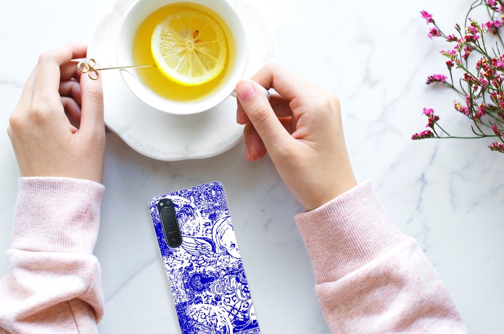 Dit ietwat duistere blauwe patroon tref je vaak aan op een bandana. Een bandana wordt om het hoofd of de hals gedragen. Een bandana is ideaal als je op de racefiets, motor of de brommer zit en jezelf wilt beschermen tegen wind, opwaaiend stof of fijn zand. Leden van motorclubs dragen dit soort bandana’s dan ook graag. Wil je jouw Sony Xperia 5II optimaal beschermen tegen opwaaiend stof, zand of andere bedreigingen, dan is dit design hoesje met Angel Skull Blue design een zeer goede keus. Het design staat op een TPU case. Dit Silicone Back Case wordt alleen aan de bovenkant bedrukt en is zeer flexibel. De randen van het hoesje blijven transparant en worden niet bedrukt. Met dit hoesje past jouw telefoon altijd in je broekzak.