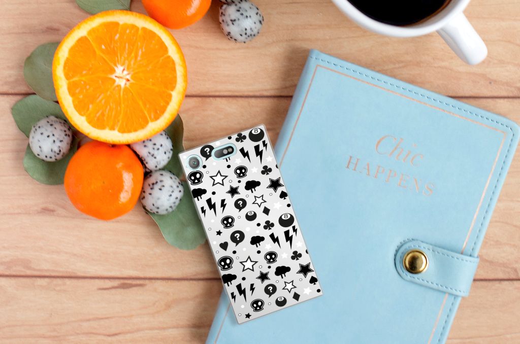 Bliksemflitsen, donderwolken, sterren en biljartballen vliegen op je af als je deze Sony Xperia XZ1 Compact Silicone Back Case koopt. Het bijzondere Silver Punk design is van onze eigen ontwerper en vind je in geen enkel andere winkel of webshop. Ben je fan van dit soort stoere en opvallende hoesjes, dan kun je je geluk niet op als je ons assortiment smartphone accessoires bekijkt. Dit zeer flexibele smartphone hoesje heeft alle nodige uitsparingen en past altijd in je broekzak. De tpu case is aan de bovenkant bedrukt met bliksemflitsen, donderwolken, sterren en biljartballen, de randen blijven transparant. Het TPU is onbreekbaar. Zelfs doodshoofdjes zie je voorbijkomen in het design. Om maar aan te geven dat je met dit zilveren hoesje een krachtige smartphone accessoire te pakken hebt.