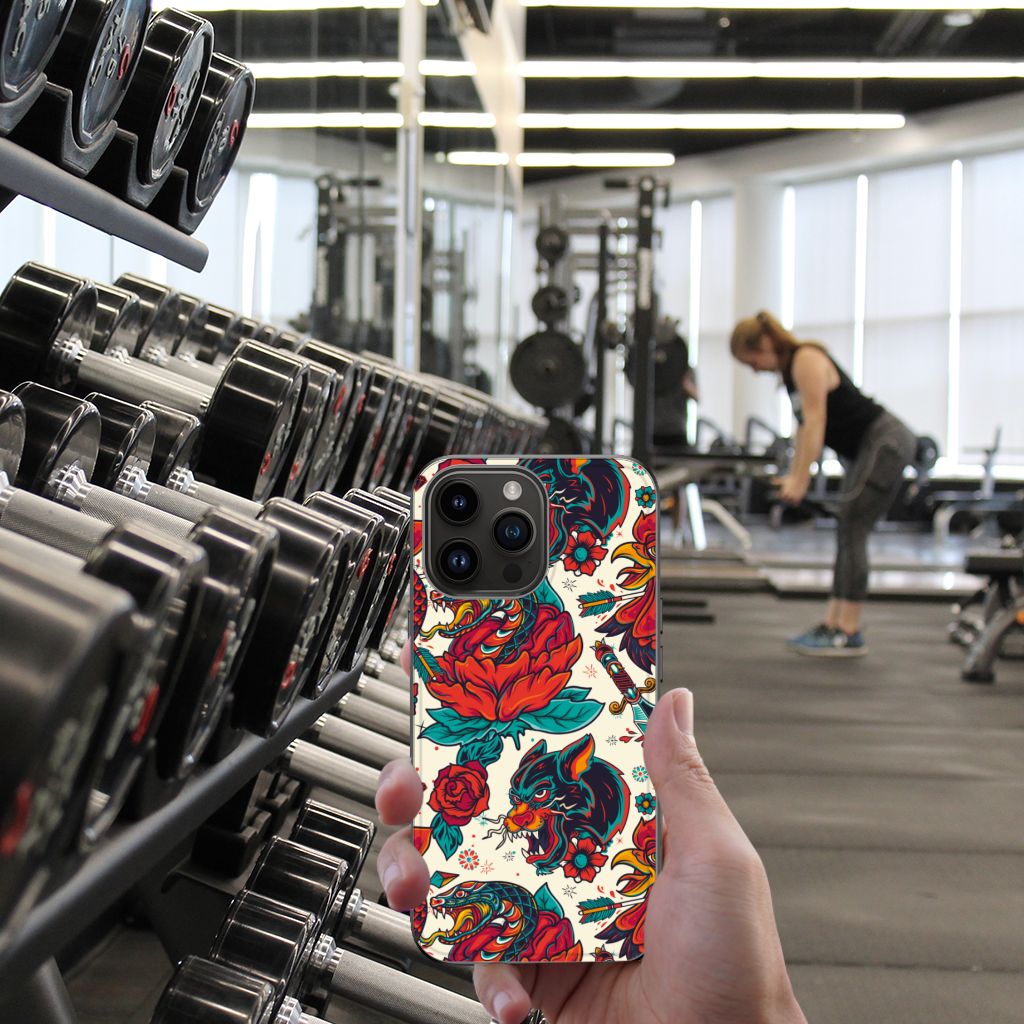 Ben je op zoek naar een stoer hoesje voor je iPhone 15 Pro Max? Dan is dit hoesje in old skool stijl zeker iets voor jou! Het heeft wel iets weg van een tatoeage, vind je ook niet? Dit old skool vintage design wordt geprint op een Silicone Back Case. Het ligt prettig in de hand en is licht van gewicht. Het is een mix van hardcase en TPU. Deze combinatie samen zorgt wat ons betreft voor een perfect hoesje! Alleen de achterkant van je telefoon wordt beschermd. Daarom adviseren wij om dit hoesje in combinatie met een screenprotector te gebruiken. Bestel vandaag nog dit toffe smartphonehoesje met stoere old skool design!
