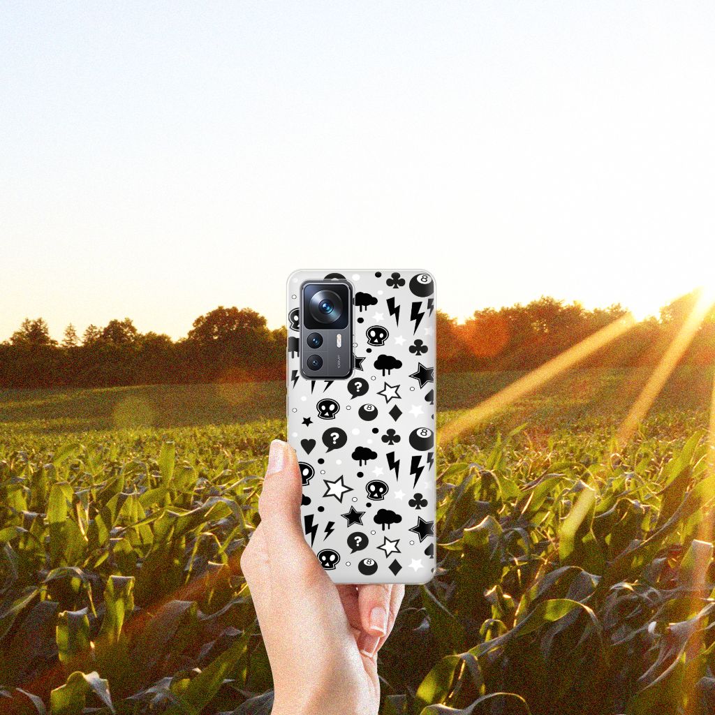 Bliksemflitsen, donderwolken, sterren en biljartballen vliegen op je af als je deze Xiaomi 12T | 12T Pro Silicone Back Case koopt. Het bijzondere Silver Punk design is van onze eigen ontwerper en vind je in geen enkel andere winkel of webshop. Ben je fan van dit soort stoere en opvallende hoesjes, dan kun je je geluk niet op als je ons assortiment smartphone accessoires bekijkt. Dit zeer flexibele smartphone hoesje heeft alle nodige uitsparingen en past altijd in je broekzak. De tpu case is aan de bovenkant bedrukt met bliksemflitsen, donderwolken, sterren en biljartballen, de randen blijven transparant. Het TPU is onbreekbaar. Zelfs doodshoofdjes zie je voorbijkomen in het design. Om maar aan te geven dat je met dit zilveren hoesje een krachtige smartphone accessoire te pakken hebt.