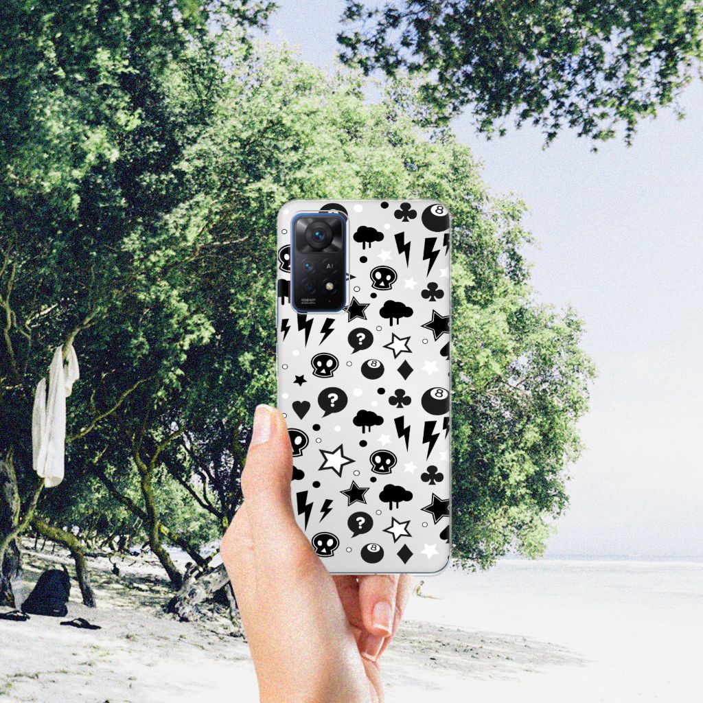 Bliksemflitsen, donderwolken, sterren en biljartballen vliegen op je af als je deze Xiaomi Redmi Note 11 Pro 5G Silicone Back Case koopt. Het bijzondere Silver Punk design is van onze eigen ontwerper en vind je in geen enkel andere winkel of webshop. Ben je fan van dit soort stoere en opvallende hoesjes, dan kun je je geluk niet op als je ons assortiment smartphone accessoires bekijkt. Dit zeer flexibele smartphone hoesje heeft alle nodige uitsparingen en past altijd in je broekzak. De tpu case is aan de bovenkant bedrukt met bliksemflitsen, donderwolken, sterren en biljartballen, de randen blijven transparant. Het TPU is onbreekbaar. Zelfs doodshoofdjes zie je voorbijkomen in het design. Om maar aan te geven dat je met dit zilveren hoesje een krachtige smartphone accessoire te pakken hebt.