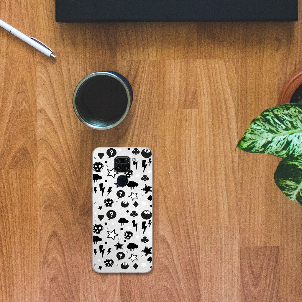 Bliksemflitsen, donderwolken, sterren en biljartballen vliegen op je af als je deze Xiaomi Redmi Note9 Silicone Back Case koopt. Het bijzondere Silver Punk design is van onze eigen ontwerper en vind je in geen enkel andere winkel of webshop. Ben je fan van dit soort stoere en opvallende hoesjes, dan kun je je geluk niet op als je ons assortiment smartphone accessoires bekijkt. Dit zeer flexibele smartphone hoesje heeft alle nodige uitsparingen en past altijd in je broekzak. De tpu case is aan de bovenkant bedrukt met bliksemflitsen, donderwolken, sterren en biljartballen, de randen blijven transparant. Het TPU is onbreekbaar. Zelfs doodshoofdjes zie je voorbijkomen in het design. Om maar aan te geven dat je met dit zilveren hoesje een krachtige smartphone accessoire te pakken hebt.