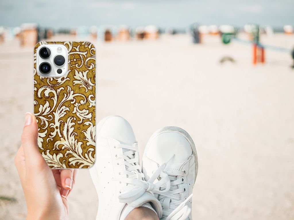 Dit super degelijke en prachtige iPhone 14 Pro Max Siliconen Hoesje met Barok Goud als achtergrond is een perfecte bescherming voor jouw smartphone. Het goud gecombineerd met opvallende tekeningen wordt op een tpu case gezet en is van toegevoegde waarde voor jouw toestel. Het bedrukken doen we in ons eigen magazijn, zodat we de kwaliteit van de case met barok goud achtergrond kunnen garanderen. Dit tpu hoesje in barok goud is perfect op maat gemaakt en heeft een mooie uitstraling. Daarnaast is de gouden case zeer flexibel en het materiaal onbreekbaar. De case in goud heeft opstaande randen ter bescherming van het scherm. De randen van het tpu hoesje barok worden niet in goud bedrukt.