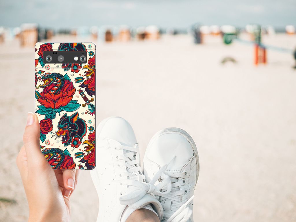 Ben je op zoek naar een stoer hoesje voor je Google Pixel 6? Dan is dit hoesje in old skool stijl zeker iets voor jou! Het heeft wel iets weg van een tatoeage, vind je ook niet? Dit old skool vintage design wordt geprint op een Siliconen Hoesje met foto. Het ligt prettig in de hand en is licht van gewicht. Alleen de achterkant van je telefoon wordt beschermd. Daarom adviseren wij om dit hoesje in combinatie met een screenprotector te gebruiken. Bescherm jouw smartphone vandaag nog met dit stoere old skool design hoesje!