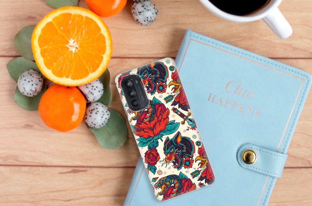 Ben je op zoek naar een stoer hoesje voor je Motorola Moto G52/G82? Dan is dit hoesje in old skool stijl zeker iets voor jou! Het heeft wel iets weg van een tatoeage, vind je ook niet? Dit old skool vintage design wordt geprint op een Siliconen Hoesje met foto. Het ligt prettig in de hand en is licht van gewicht. Alleen de achterkant van je telefoon wordt beschermd. Daarom adviseren wij om dit hoesje in combinatie met een screenprotector te gebruiken. Bescherm jouw smartphone vandaag nog met dit stoere old skool design hoesje!