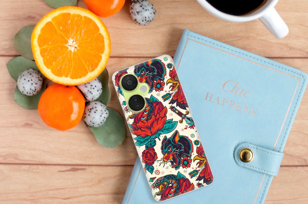 Ben je op zoek naar een stoer hoesje voor je OnePlus Nord CE 3 Lite? Dan is dit hoesje in old skool stijl zeker iets voor jou! Het heeft wel iets weg van een tatoeage, vind je ook niet? Dit old skool vintage design wordt geprint op een Siliconen Hoesje met foto. Het ligt prettig in de hand en is licht van gewicht. Alleen de achterkant van je telefoon wordt beschermd. Daarom adviseren wij om dit hoesje in combinatie met een screenprotector te gebruiken. Bescherm jouw smartphone vandaag nog met dit stoere old skool design hoesje!