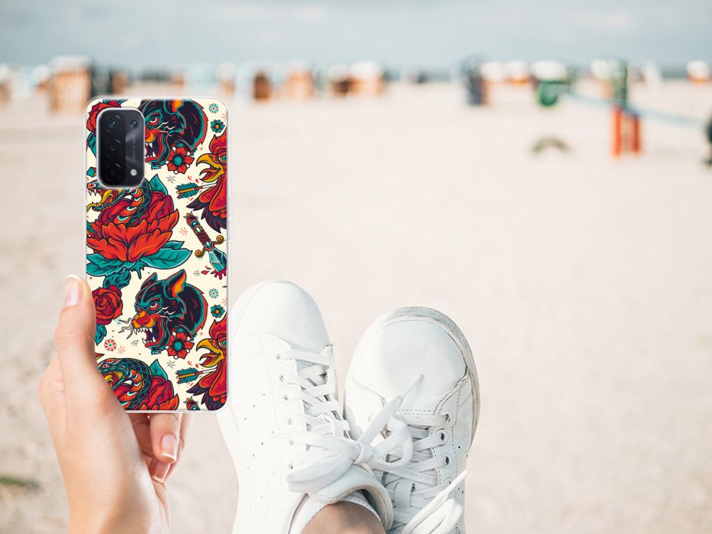 Ben je op zoek naar een stoer hoesje voor je OPPO A93 5G? Dan is dit hoesje in old skool stijl zeker iets voor jou! Het heeft wel iets weg van een tatoeage, vind je ook niet? Dit old skool vintage design wordt geprint op een Siliconen Hoesje met foto. Het ligt prettig in de hand en is licht van gewicht. Alleen de achterkant van je telefoon wordt beschermd. Daarom adviseren wij om dit hoesje in combinatie met een screenprotector te gebruiken. Bescherm jouw smartphone vandaag nog met dit stoere old skool design hoesje!