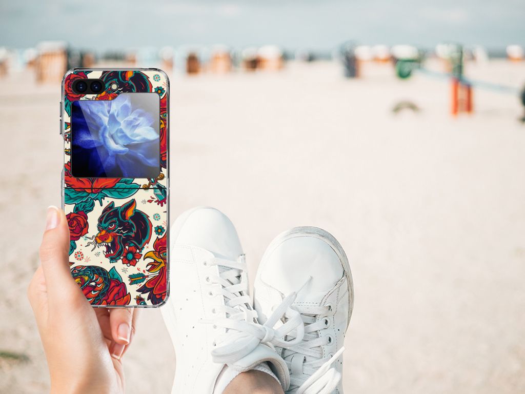 Ben je op zoek naar een stoer hoesje voor je Samsung Galaxy Z Flip 5? Dan is dit hoesje in old skool stijl zeker iets voor jou! Het heeft wel iets weg van een tatoeage, vind je ook niet? Dit old skool vintage design wordt geprint op een Siliconen Hoesje met foto. Het ligt prettig in de hand en is licht van gewicht. Alleen de achterkant van je telefoon wordt beschermd. Daarom adviseren wij om dit hoesje in combinatie met een screenprotector te gebruiken. Bescherm jouw smartphone vandaag nog met dit stoere old skool design hoesje!