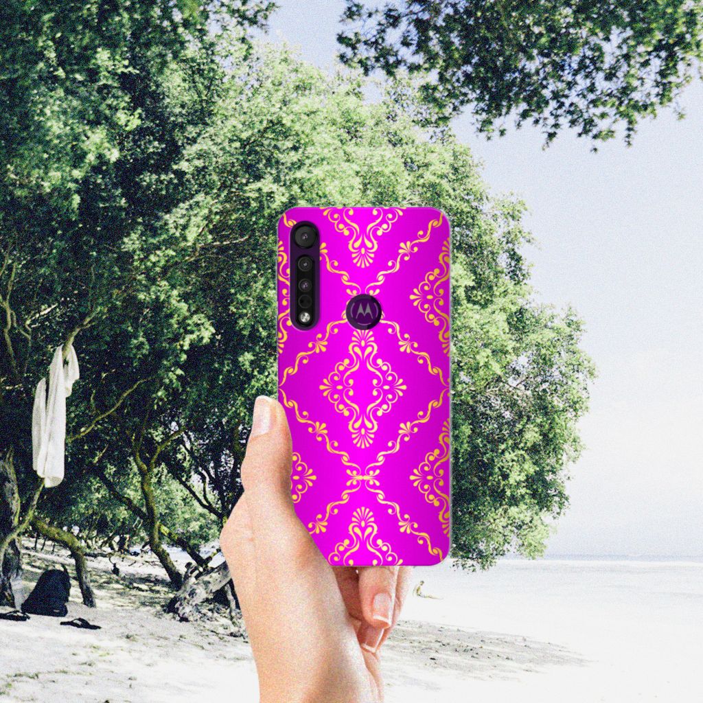 Dit super mooie Motorola One Macro Siliconen Hoesje met Barok Roze achtergrond is een geweldige en duurzame bescherming voor jouw smartphone. De roze kleuren en figuren worden met de grootst mogelijke zorg op het hoesje gezet en op de achterkant bedrukt. Dit drukwerk doen we in ons eigen magazijn, zodat we de kwaliteit van het tpu hoesje met roze barok achtergrond kunnen garanderen. Een tpu hoesje is perfect op maat gemaakt en heeft een mooie uitstraling. Daarnaast is de case zeer flexibel en het materiaal onbreekbaar. De case heeft opstaande randen ter bescherming van het scherm. De randen van het tpu hoesje worden niet in roze barok bedrukt. Nergens anders tref je een tpu hoesje met roze barok achtergrond aan dat zo goed past bij jouw smartphone.
