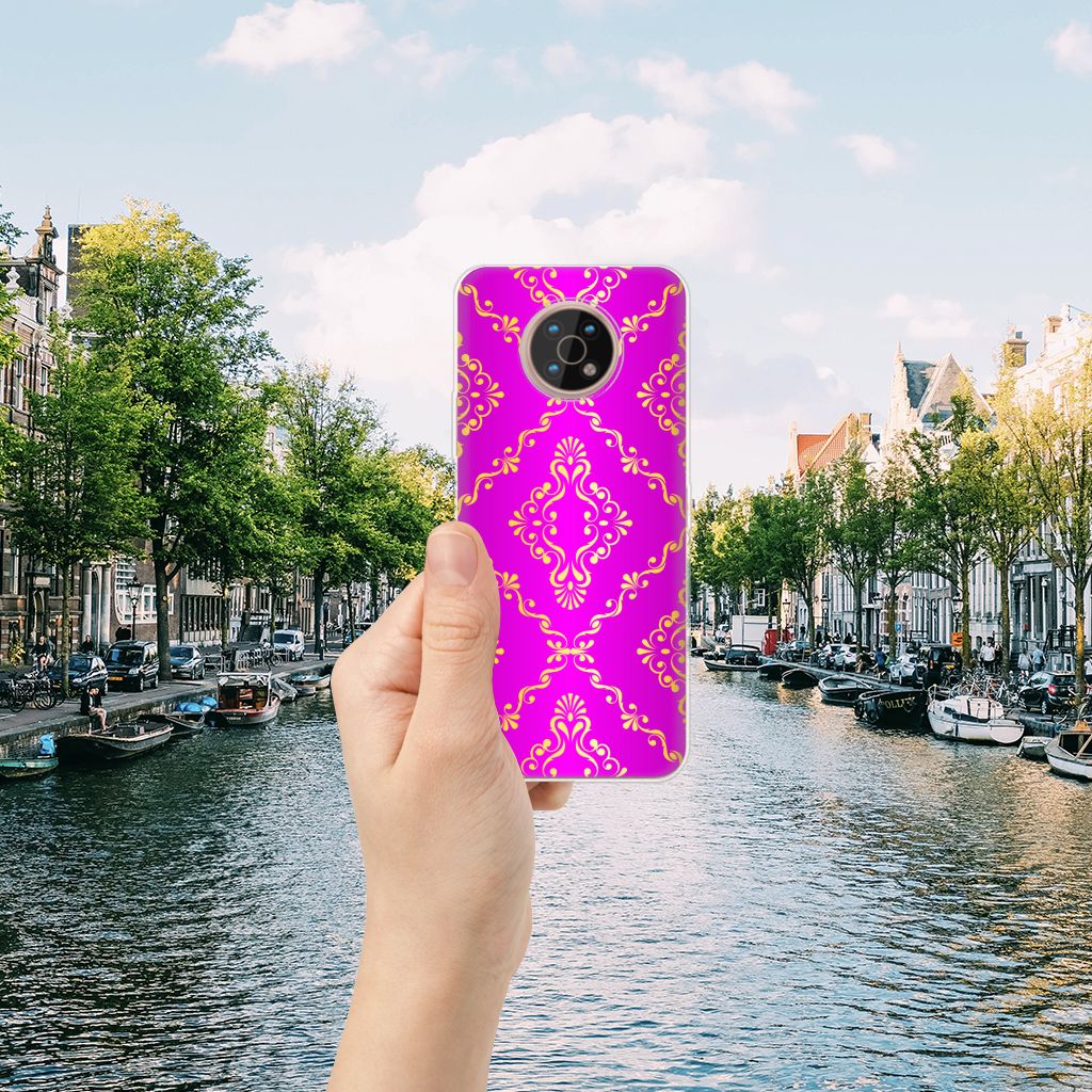 Dit super mooie Nokia G50 Siliconen Hoesje met Barok Roze achtergrond is een geweldige en duurzame bescherming voor jouw smartphone. De roze kleuren en figuren worden met de grootst mogelijke zorg op het hoesje gezet en op de achterkant bedrukt. Dit drukwerk doen we in ons eigen magazijn, zodat we de kwaliteit van het tpu hoesje met roze barok achtergrond kunnen garanderen. Een tpu hoesje is perfect op maat gemaakt en heeft een mooie uitstraling. Daarnaast is de case zeer flexibel en het materiaal onbreekbaar. De case heeft opstaande randen ter bescherming van het scherm. De randen van het tpu hoesje worden niet in roze barok bedrukt. Nergens anders tref je een tpu hoesje met roze barok achtergrond aan dat zo goed past bij jouw smartphone.