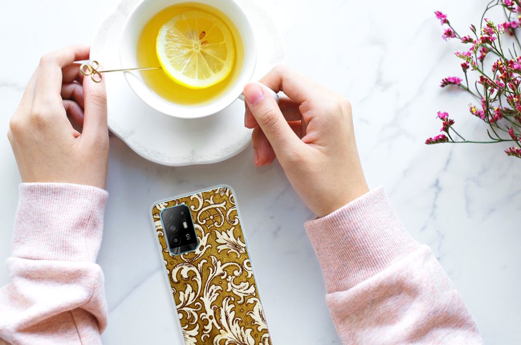 Dit super degelijke en prachtige OPPO A94 5G | Reno5 Z Siliconen Hoesje met Barok Goud als achtergrond is een perfecte bescherming voor jouw smartphone. Het goud gecombineerd met opvallende tekeningen wordt op een tpu case gezet en is van toegevoegde waarde voor jouw toestel. Het bedrukken doen we in ons eigen magazijn, zodat we de kwaliteit van de case met barok goud achtergrond kunnen garanderen. Dit tpu hoesje in barok goud is perfect op maat gemaakt en heeft een mooie uitstraling. Daarnaast is de gouden case zeer flexibel en het materiaal onbreekbaar. De case in goud heeft opstaande randen ter bescherming van het scherm. De randen van het tpu hoesje barok worden niet in goud bedrukt.