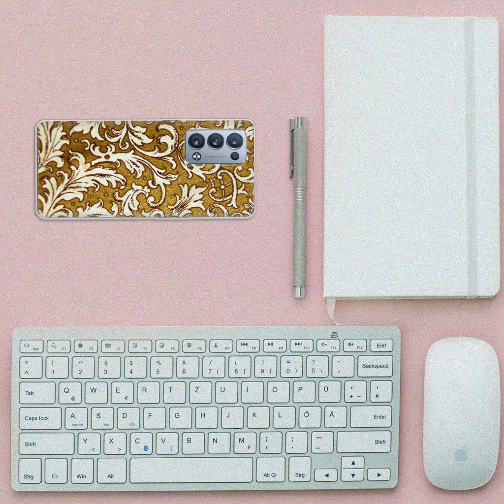 Dit super degelijke en prachtige OPPO Reno 6 Pro Plus 5G Siliconen Hoesje met Barok Goud als achtergrond is een perfecte bescherming voor jouw smartphone. Het goud gecombineerd met opvallende tekeningen wordt op een tpu case gezet en is van toegevoegde waarde voor jouw toestel. Het bedrukken doen we in ons eigen magazijn, zodat we de kwaliteit van de case met barok goud achtergrond kunnen garanderen. Dit tpu hoesje in barok goud is perfect op maat gemaakt en heeft een mooie uitstraling. Daarnaast is de gouden case zeer flexibel en het materiaal onbreekbaar. De case in goud heeft opstaande randen ter bescherming van het scherm. De randen van het tpu hoesje barok worden niet in goud bedrukt.