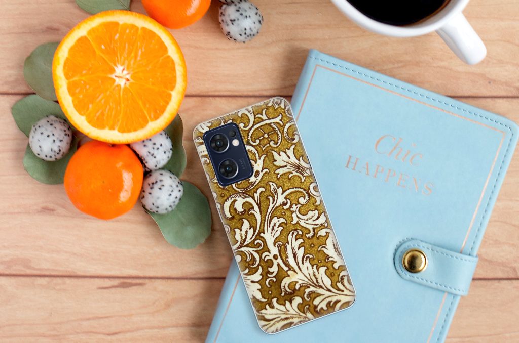 Dit super degelijke en prachtige OPPO Reno 7 5G | Find X5 Lite Siliconen Hoesje met Barok Goud als achtergrond is een perfecte bescherming voor jouw smartphone. Het goud gecombineerd met opvallende tekeningen wordt op een tpu case gezet en is van toegevoegde waarde voor jouw toestel. Het bedrukken doen we in ons eigen magazijn, zodat we de kwaliteit van de case met barok goud achtergrond kunnen garanderen. Dit tpu hoesje in barok goud is perfect op maat gemaakt en heeft een mooie uitstraling. Daarnaast is de gouden case zeer flexibel en het materiaal onbreekbaar. De case in goud heeft opstaande randen ter bescherming van het scherm. De randen van het tpu hoesje barok worden niet in goud bedrukt.
