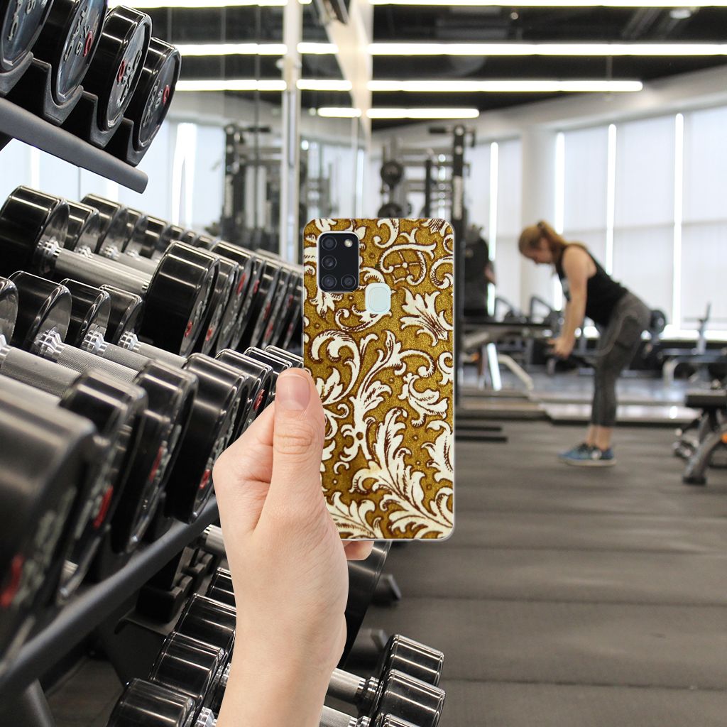 Dit super degelijke en prachtige Samsung Galaxy A21s Siliconen Hoesje met Barok Goud als achtergrond is een perfecte bescherming voor jouw smartphone. Het goud gecombineerd met opvallende tekeningen wordt op een tpu case gezet en is van toegevoegde waarde voor jouw toestel. Het bedrukken doen we in ons eigen magazijn, zodat we de kwaliteit van de case met barok goud achtergrond kunnen garanderen. Dit tpu hoesje in barok goud is perfect op maat gemaakt en heeft een mooie uitstraling. Daarnaast is de gouden case zeer flexibel en het materiaal onbreekbaar. De case in goud heeft opstaande randen ter bescherming van het scherm. De randen van het tpu hoesje barok worden niet in goud bedrukt.