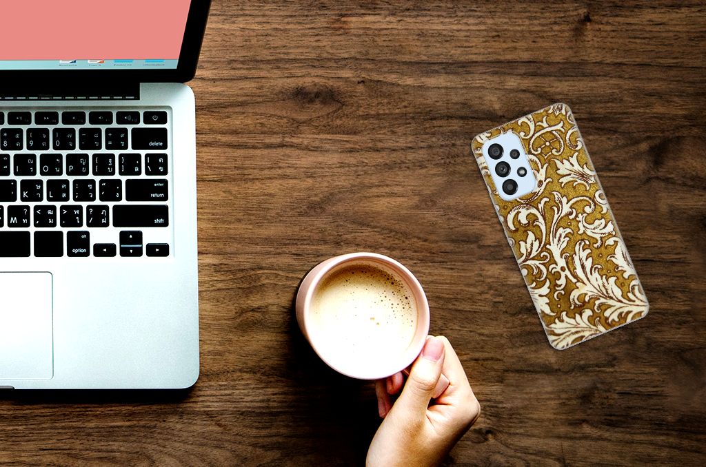 Dit super degelijke en prachtige Samsung Galaxy A53 5G Siliconen Hoesje met Barok Goud als achtergrond is een perfecte bescherming voor jouw smartphone. Het goud gecombineerd met opvallende tekeningen wordt op een tpu case gezet en is van toegevoegde waarde voor jouw toestel. Het bedrukken doen we in ons eigen magazijn, zodat we de kwaliteit van de case met barok goud achtergrond kunnen garanderen. Dit tpu hoesje in barok goud is perfect op maat gemaakt en heeft een mooie uitstraling. Daarnaast is de gouden case zeer flexibel en het materiaal onbreekbaar. De case in goud heeft opstaande randen ter bescherming van het scherm. De randen van het tpu hoesje barok worden niet in goud bedrukt.